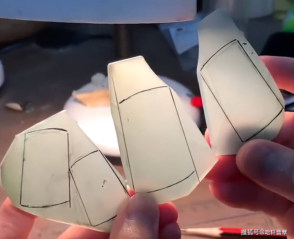 这份材料是比较厚的,但整体料形不算大,以这个厚度是能切三片的,不过若是切三片的话,就做不了像路路通的这类的,在打灯细细观察之后,决定还是先按切片这个思路来。