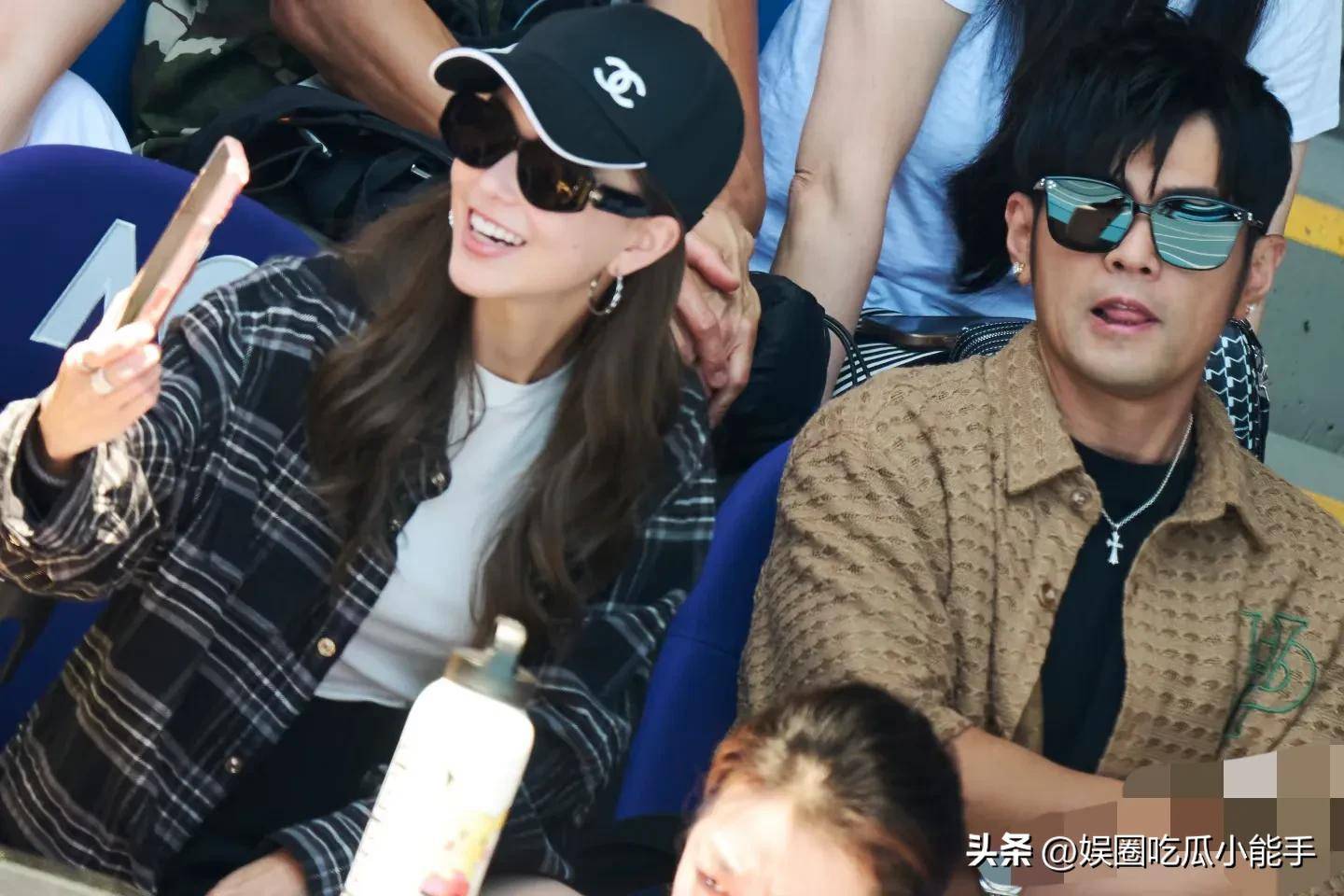 『昆凌』戴着一顶低调却时尚的黑色香奈儿鸭舌帽🧢,配上大大的墨镜🕶️和夸张耳环,黑色格纹衬衫让她看起来既休闲又带着几分精致感。『周杰伦』则选择了咖色衬衫,内搭简约的黑色短袖,同样戴着墨镜🕶️,整个人显得低调而有型。夫妻俩的『打扮』,既舒适又时尚,像是在用自己的方式诠释休闲观赛的格调。