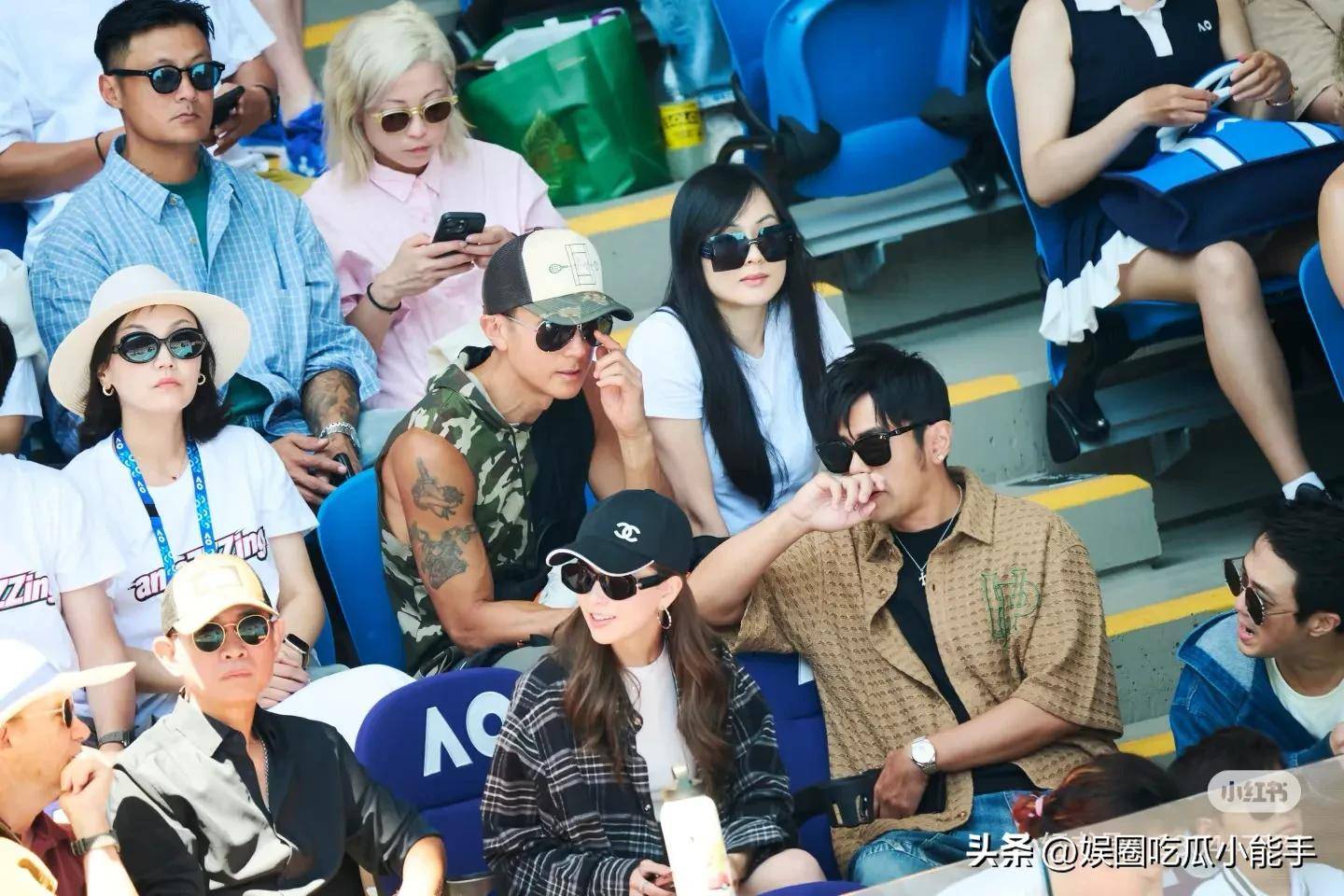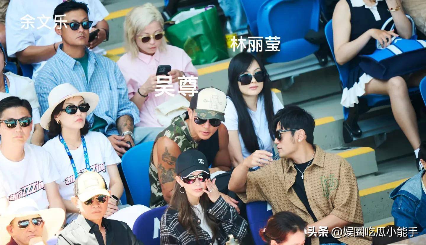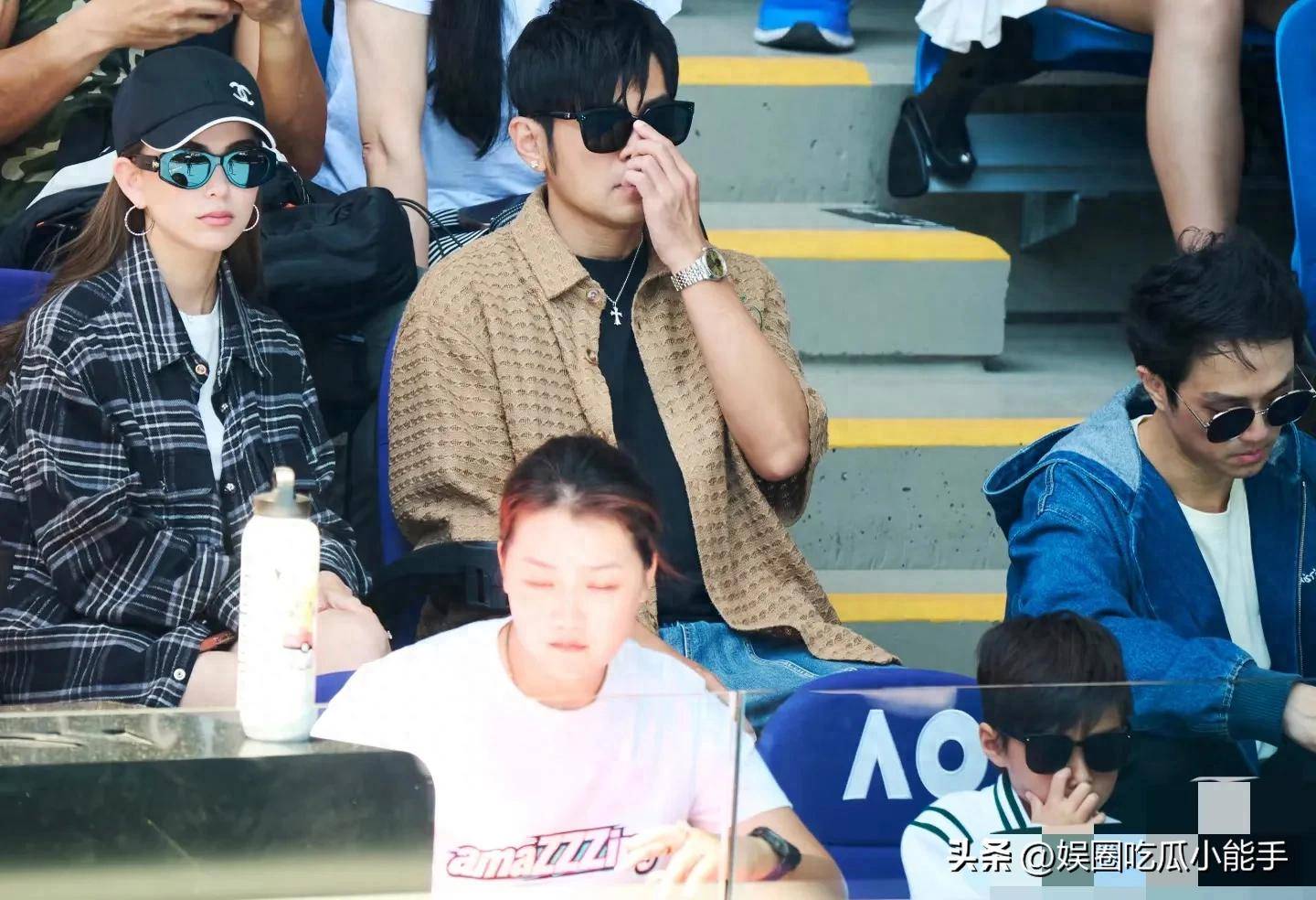 他们坐在看台上全神贯注地观赛,但偶尔也会与身边的友人轻声交谈,脸上挂着轻松的笑意,气氛自然又温暖。坐在『周杰伦』身后的正是吴尊和林丽莹夫妻,他们同样是网球爱好者。尤其是吴尊,经常打网球,皮肤晒得黝黑,几乎让人认不出他来。