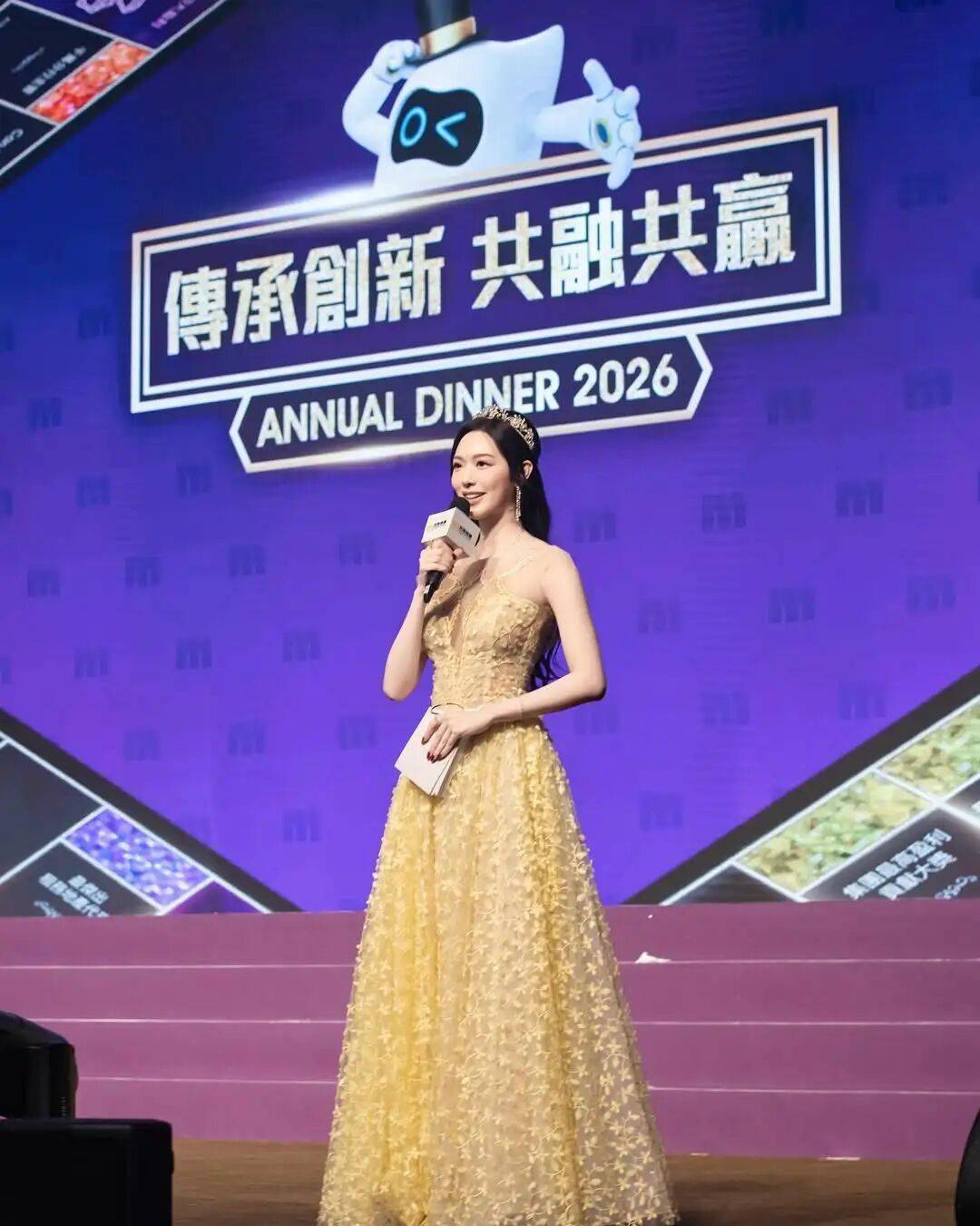 TVB花旦冯盈盈近年几乎不再拍剧,而是转型做了司仪。昨日,她在社交网晒出多张美照,透露为某公司担任晚宴司仪:“当晚气氛热烈,来宾热情投入,场面盛大辉煌。” 她还用自己名字谐音,祝福主办方 “厚切大盈利”。