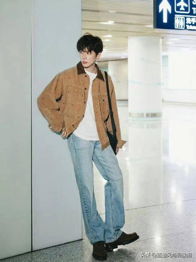 另一套棕色麂皮夹克造型,更是把 CELINE 的美式复古松弛感焊在了身上。细腻哑光的麂皮面料,自带复古滤镜,落肩的宽松廓形不压肩,内搭一件极简白 T,下装配水洗蓝『直筒牛仔裤』👖,没有多余的装饰,却把 “不费力的时髦” 玩到了极致。这套造型最绝的,是风格对冲:麂皮夹克的复古成熟,和白 T 牛仔裤👖的少年感,一刚一柔,一熟一嫩,平衡得刚刚好,既有 CELINE 的复古摇滚内核,又有王安宇本人的干净少年气,哪怕是日常出街的造型,也自带秀场级的氛围感。