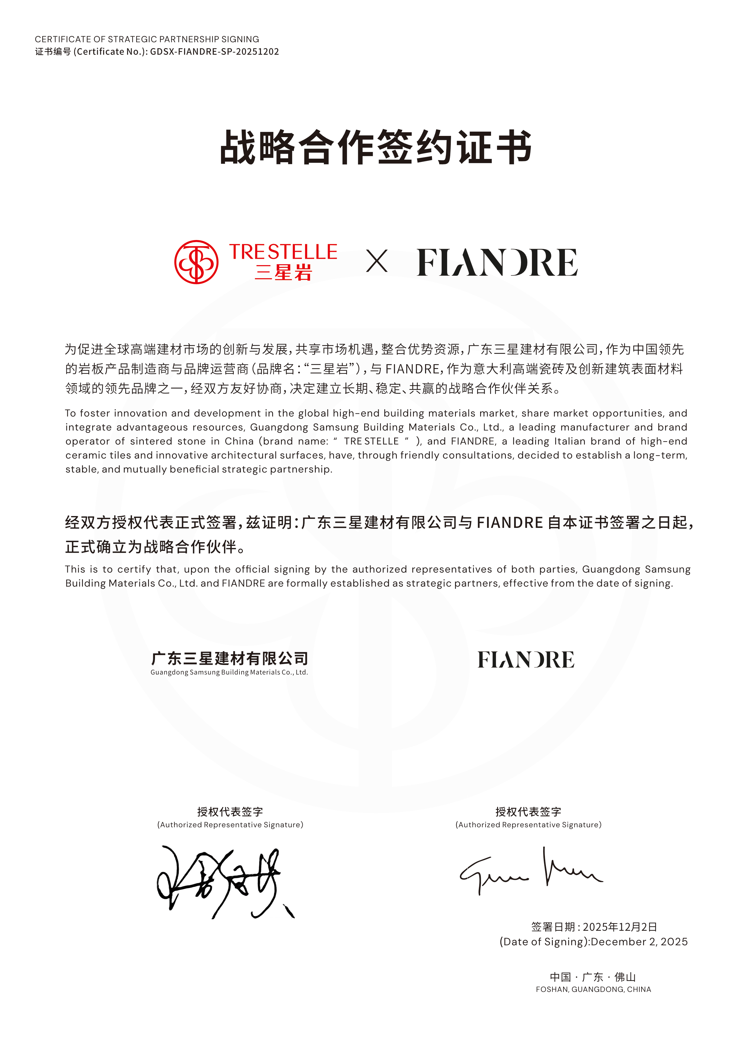 行业优势在岩板行业,三星岩具有显著的优势。它与FIANDRE、FONDOVALLE等意大利岩板品牌深度合作,这些品牌均诞生于意大利陶瓷工业核心区艾米利亚 - 罗马涅大区,拥有超过50年岩板研发历史,是欧洲『奢侈品』空间的指定材料供应商。三星岩引入了这些品牌的原厂出品岩板产品线,建立了深度供应链协同。这使得三星岩在工艺源头就具备了高标准与纯正性,能够为市场提供具有国际水准的岩板产品。