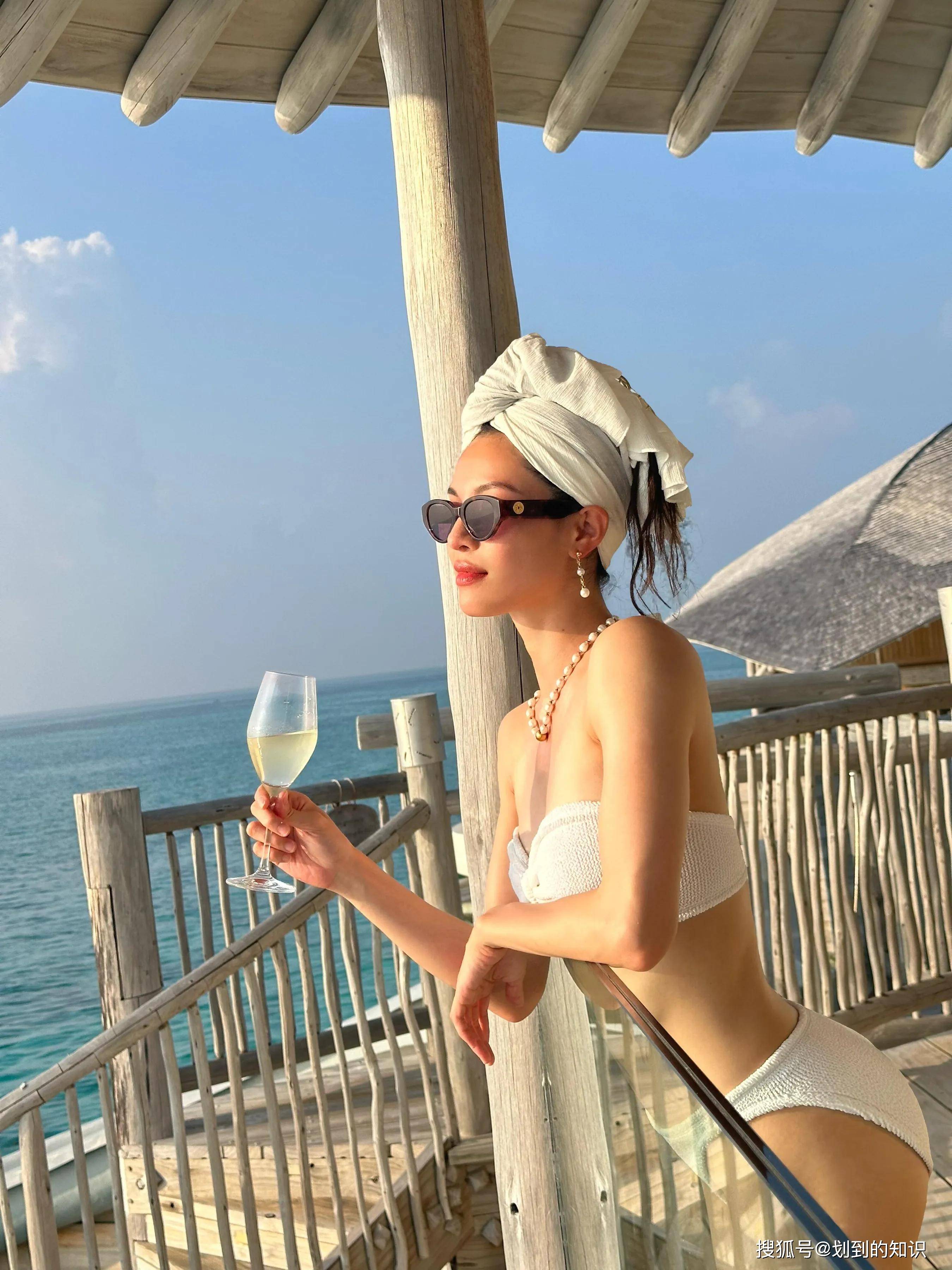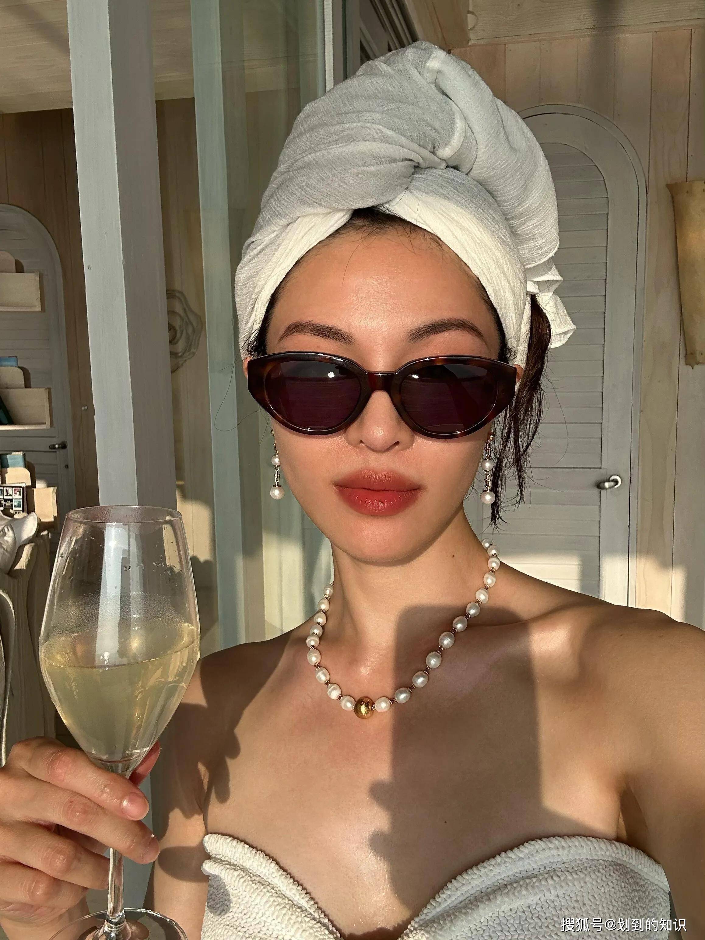 钟楚曦恢复单身后活得更洒脱了,她穿着白色比基尼👙,脖子上戴着珍珠项链,拿着香槟酒沐浴着阳光,她可太会享受生活了。
