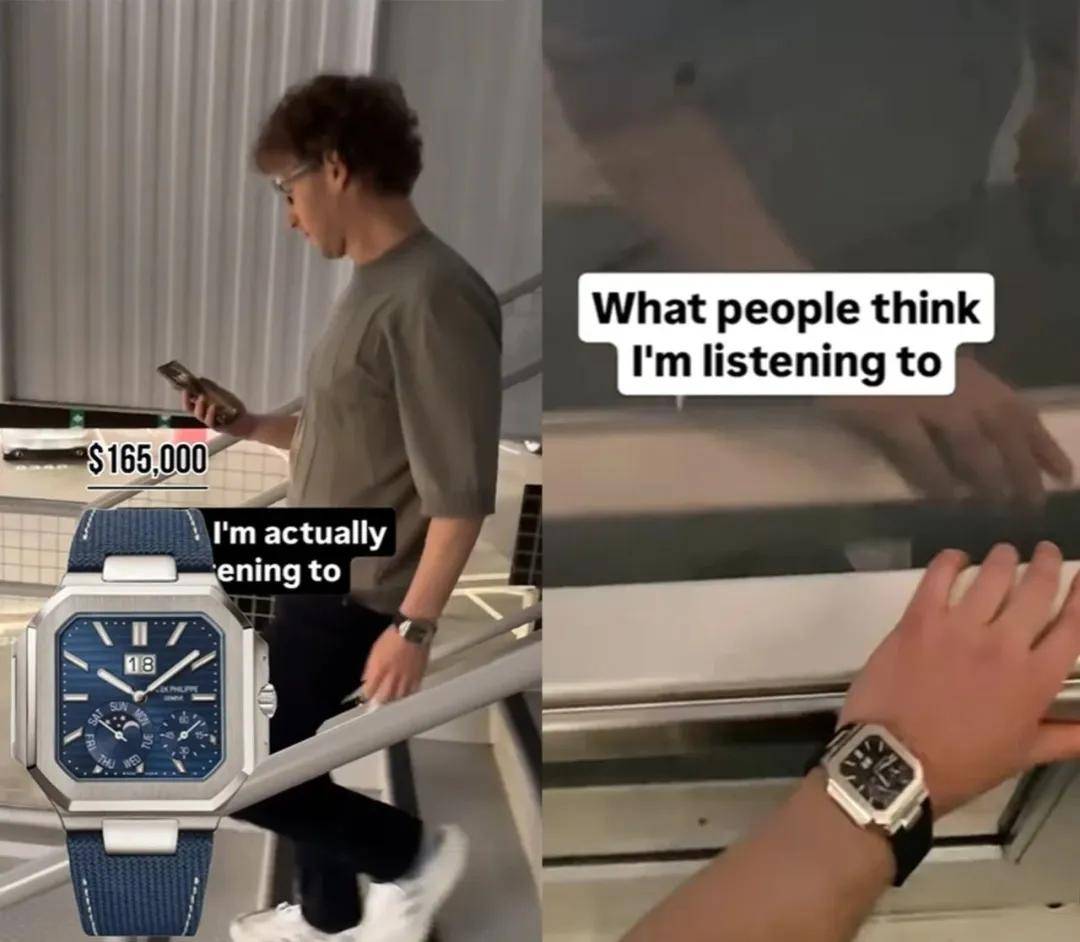 晒出的Vlog里,甚至火速上手了百达翡丽推出不久的Cubitus,还是搭载月相功能的铂金款5822P。小扎这看似毫不经意地秀出腕间,实则完全走在前沿,就差把“我是表圈insider”写在脸上了~