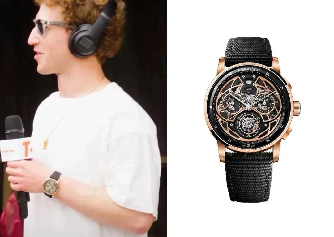 还秀过爱彼CODE 11:59自动上链飞行陀飞轮计时码表,黑金外形十分酷炫,限量50枚,价值约20万美元💵,也是真懂行的表哥才会拥有的高阶收藏款。