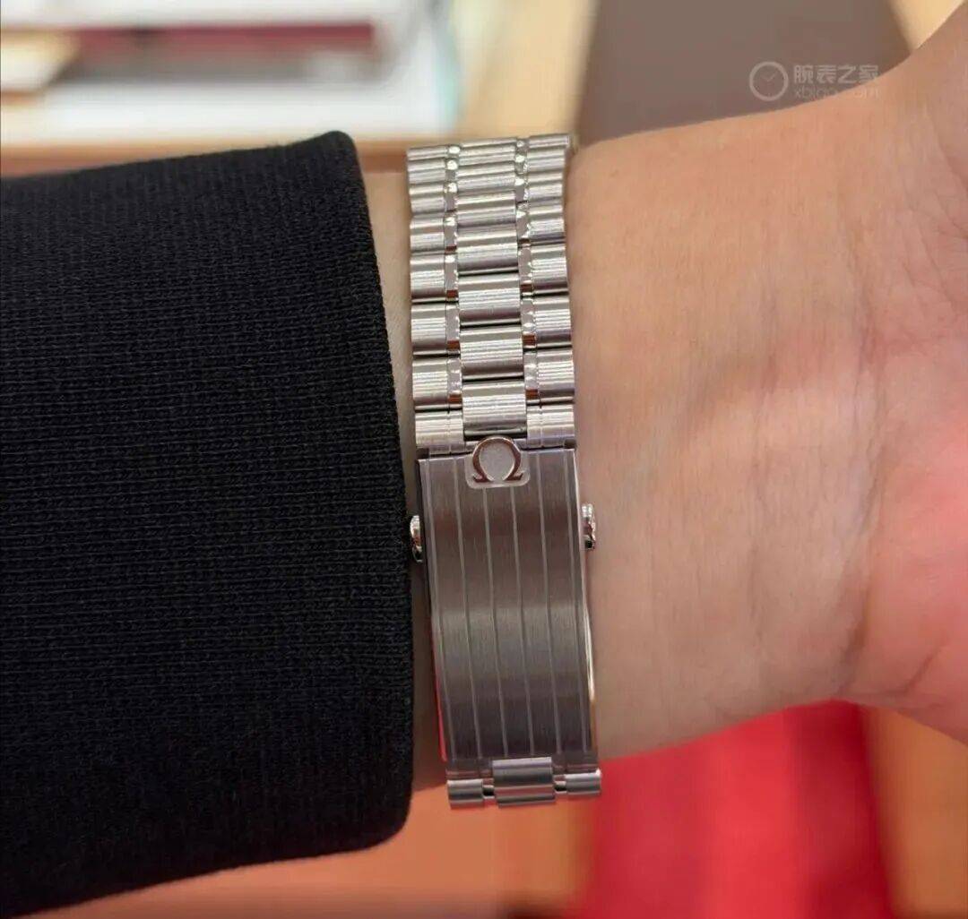 表链则经过抛光与拉丝双重处理,兼顾质感与耐磨性,上手舒适,还采用了欧米茄自研的可调节表扣,佩戴时可以根据手腕粗细灵活调节,实用性很强。