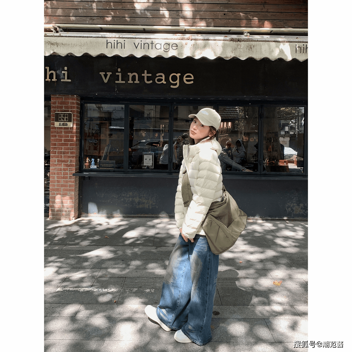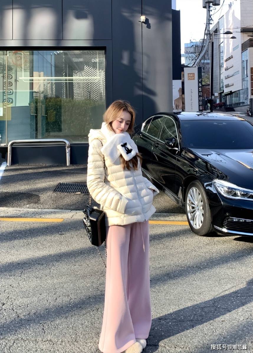 要点:靴筒和裙摆之间留 3cm 空隙,让裙摆自然垂下,走动时刚好露出小腿最细的地方。搭配软糯的针织帽和羊毛裙,弱化羽绒的利落感,增添软乎乎的温柔氛围,约会穿甜度刚好,不刻意不做作,男生都爱这种松弛感