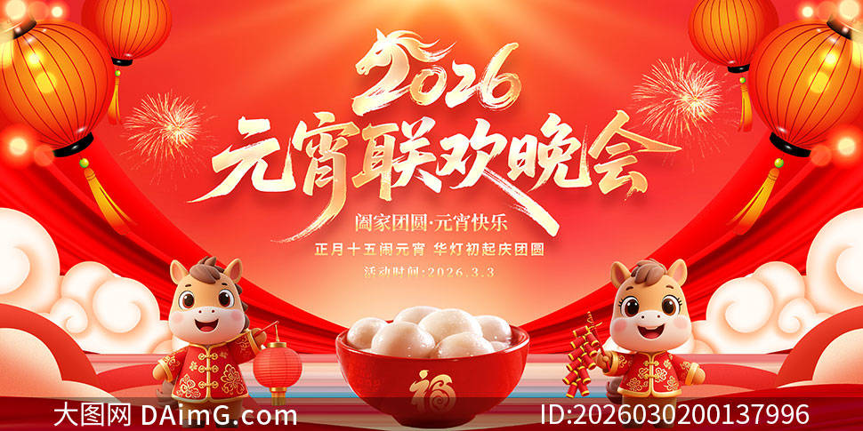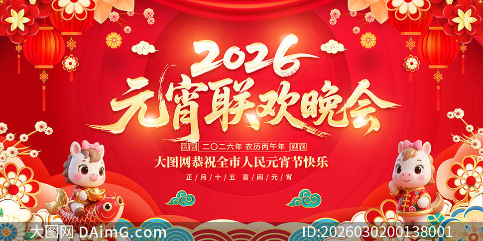 2026年元宵节晚会的舞台之上,一组精心打造的舞台背景展板成为全场焦点,瞬间将节日氛围拉满。