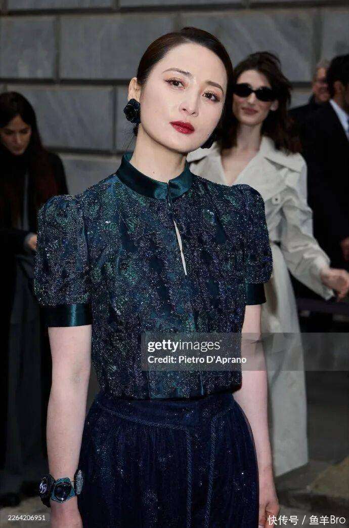 那一身Giorgio Armani蓝绿色的手工刺绣套装,让蒋勤勤的气质愈发凸显。她利落的盘发,巧妙地勾勒出她流畅的面部轮廓,颧骨与下颌线清晰立体,360°无死角的美,简直堪称骨相美的天花板。她的每一个角度,都展现出优雅与力量的完美融合,仿佛岁月在她身上只留下了成熟与智慧的痕迹,而非衰老。