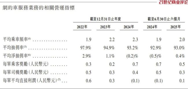 截至2025年底,全国共有395家网约车平台。滴滴、曹操出行、如祺、T3等少数平台依靠自有渠道获得一定单量。大多数小出行平台则依赖高德等聚合平台获取订单,并支付佣金。以盛威时代为例,旗下拥有365约车,2025年上半年仅高德平台就贡献了94.5%的GTV(订单总交易价值)。聚合平台抽佣比例为10%-20%,盛威时代与高德签订的协议费用率为9%,飞猪为15%。2025年上半年,盛威时代从高德平台获得8.3亿元GTV,共支付6140万元服务费,计算得出高德打车的抽成率为7.4%。相较滴滴平台14%的平均抽成率,这个数字看似不高,但乘客及司机补贴、纠纷处理等运营成本大多由出行平台承担,聚合平台只承担有限责任,成本较低。