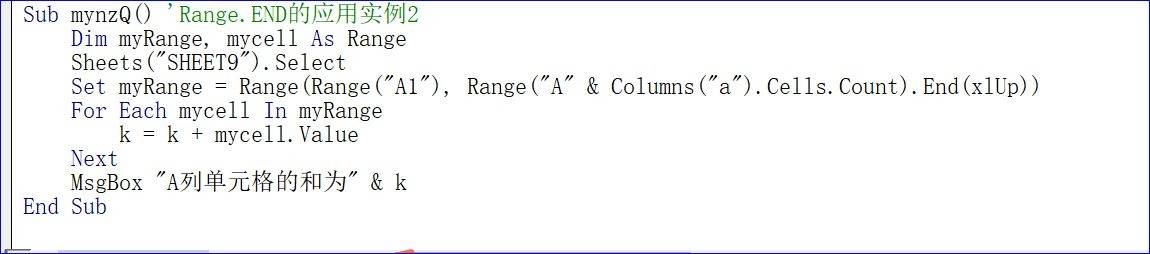 Sub mynzQ() 'Range.END的应用实例2