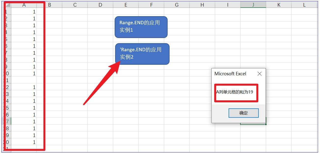 2) 如何利用单元格的End属性获取某列向下到非空单元格?