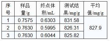 测试结果:经测试,该活性炭的碘吸附值为827.9mg/g。