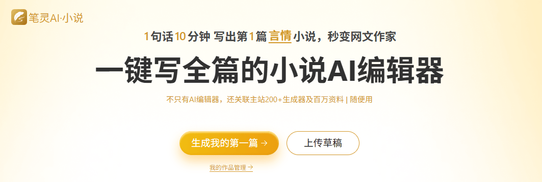 如果让我只推荐一个入门就能上手的工具,那一定是笔灵。它的【AI写全篇小说】功能对新手简直就是救命稻草。
