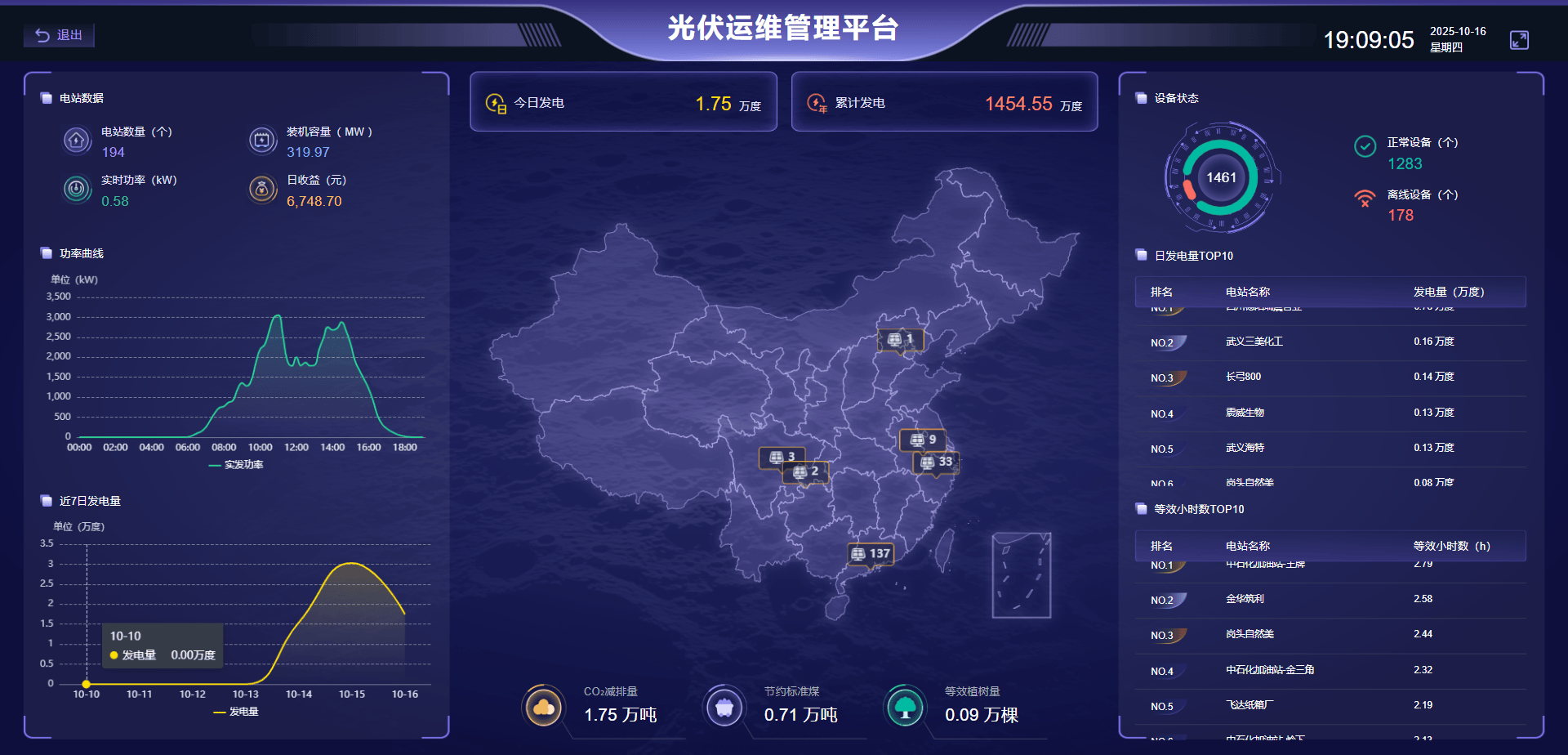 l 电站设备状态监控:实时区分正常设备与离线设备数量,运维人员可通过系统仪表盘快速定位异常设备。