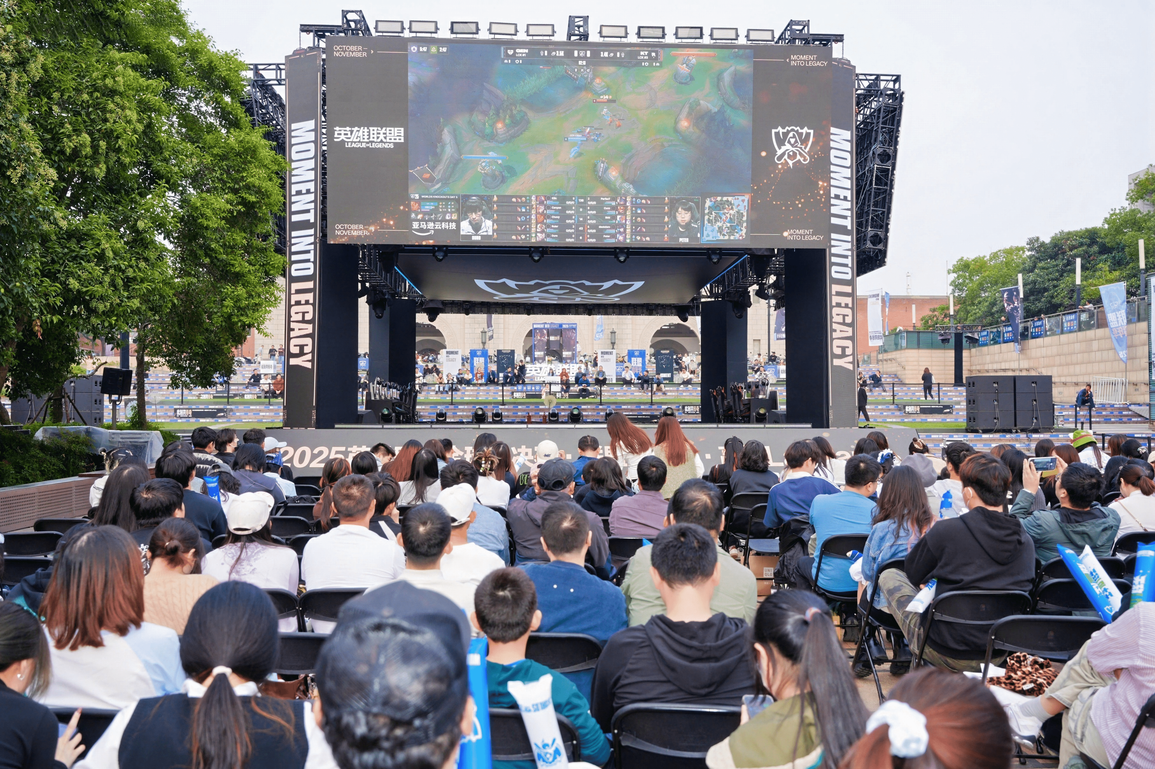 近日,随着英雄联盟全球总决赛在上海掀起电竞热潮,一场以高校为核心的电竞嘉年华在上海创智天地广场同步上演。作为全场唯一显示设备支持品牌,雷鸟显示器以41台高性能设备构建起全场景显示矩阵,通过"观赛+竞技+互动"的立体化布局,成为连接全球赛事与本土校园电竞文化的重要纽带。