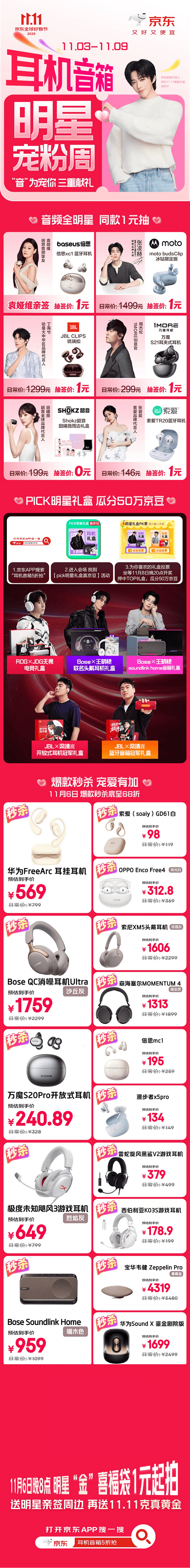 附京东11.11耳机音箱明星宠粉周完整活动信息: