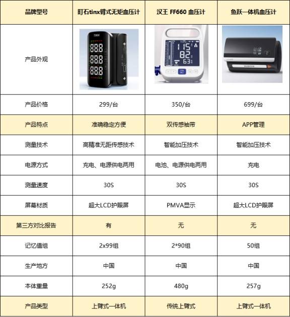 汉王血压计和鱼跃血压计哪个准确?旅行便携血压计哪款好用?下面是这三款血压计的基础数据,我们需要关注三个关键方面:音质效果、安降噪性能,以及佩戴舒适度,这三个方面的表现结合才可以全面评估一款血压计。
