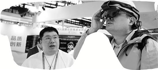 | 本报记者体验中国电信AR眼镜 张孙超 摄 |