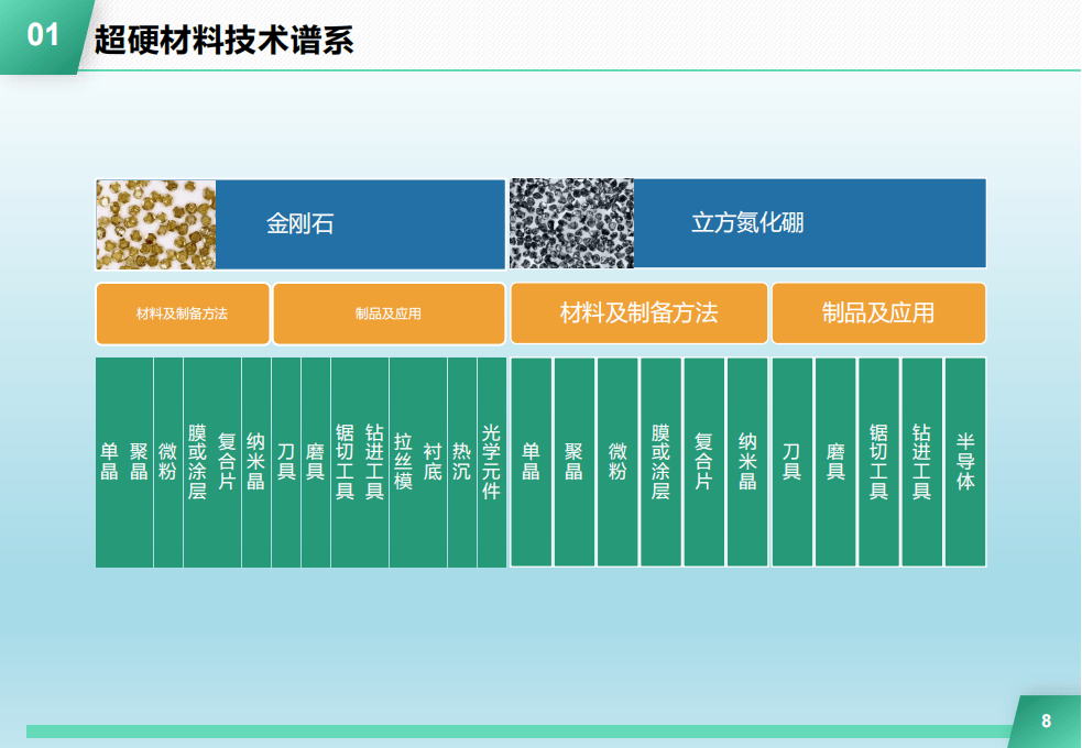产业未来发展趋势清晰,合成技术方面聚焦纳米级超硬材料、复合材料及环保低能耗制备方法;应用领域向汽车制造、半导体、光学器件等高端制造延伸。国内企业在原材料及部分中游制品领域已形成竞争优势,但高端制品及功能化应用仍有提升空间,高校、科研院所与企业的协同创新将为产业发展提供重要支撑,推动产业向专用化、精细化、高端化方向迈进。