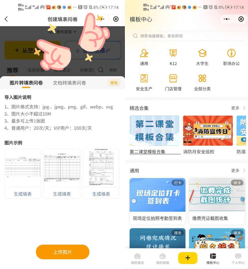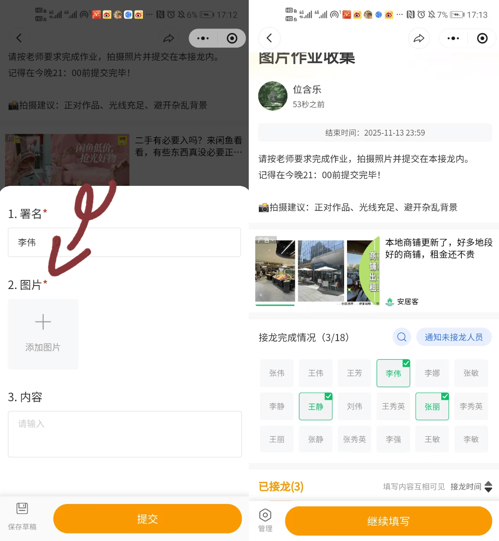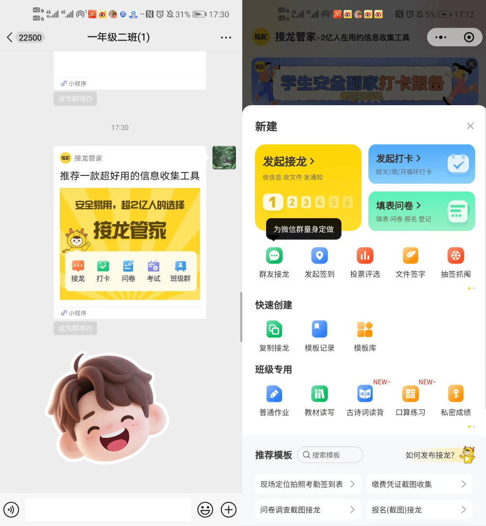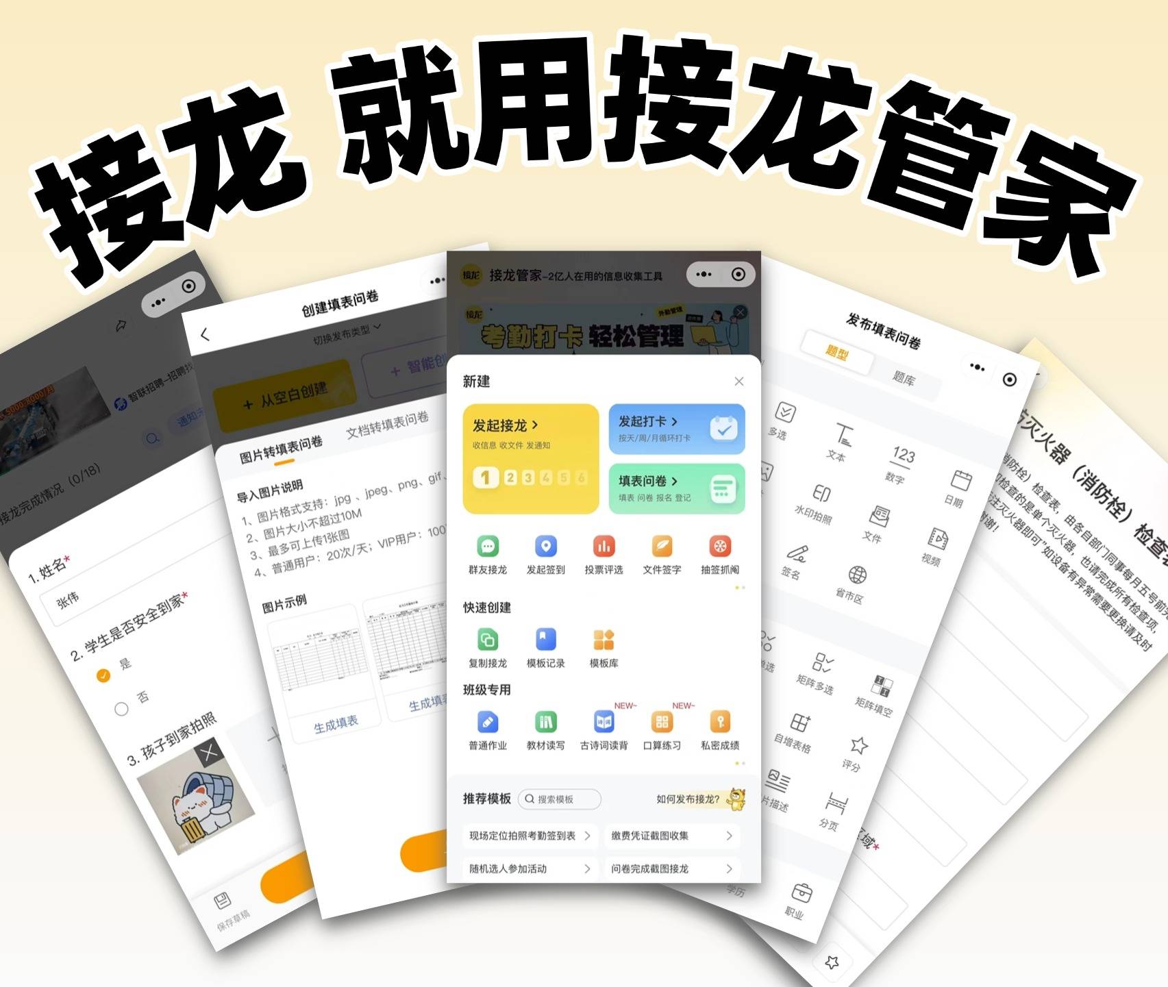・发起签到、在线投票、抽签抓阄、活动报名、在线考试等多种接龙……