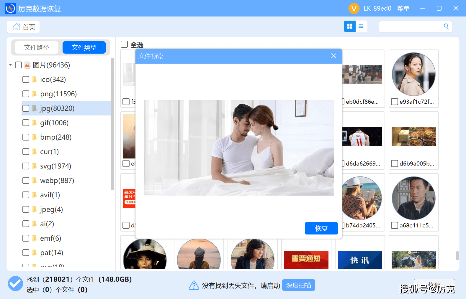 打开软件后,选择数据丢失的的分区进行扫描,扫描完成后就能预览数据了