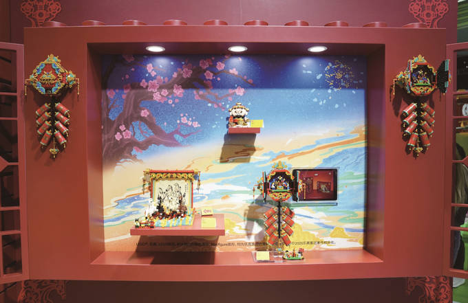 ↓11月6日在进博会消费品展区拍摄的乐高集团中国传统节日套装马年新品。这是该产品全球首发。