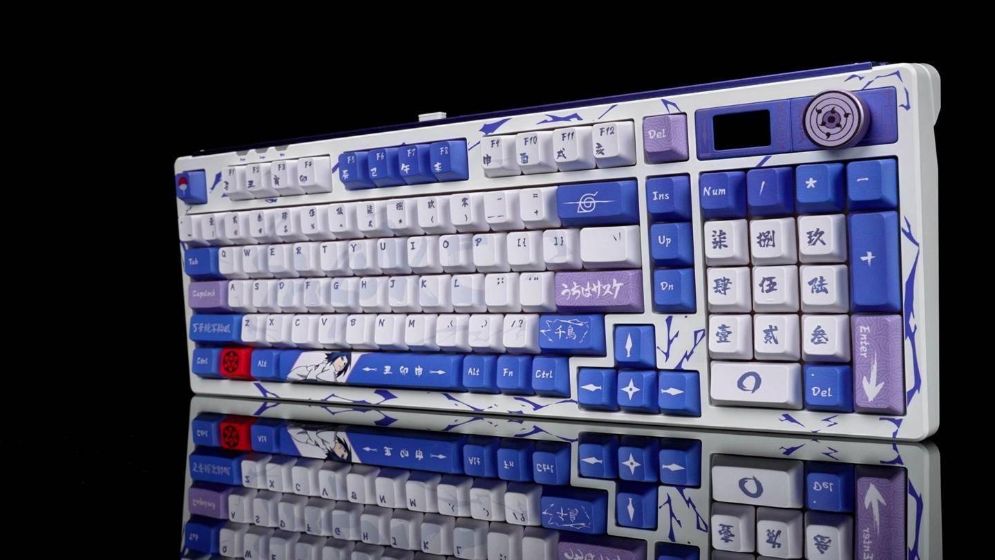 IT之家了解到,该键盘包含漩涡鸣人、宇智波佐助、宇智波鼬三种主题版本,搭载冠泰极磁 · 灼华轴与全五面热升华工艺 PBT 材质键帽,采用 Gasket 结构和五层填充设计,配备下灯位轴体热插拔 PCB 和 PC 材质开槽处理定位板,拥有小型 TFT 彩屏。