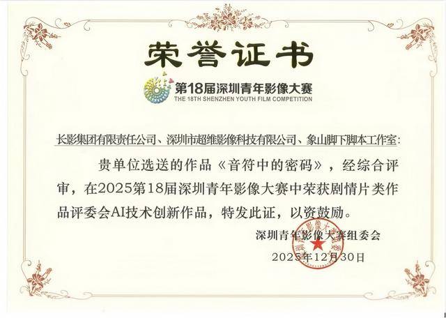 日前,长影作品再传捷报。长影出品的中国首部AIGC高清微电影《音符中的密码》荣获第18届深圳青年影像大赛剧情片类作品评委会AI技术创新作品奖,网络微短剧《铁血英魂》入选国家广播电视总局2025年第三季度优秀网络视听作品推选活动优秀作品目录。两部作品在技术创新与红色传承领域斩获殊荣,彰显了长影始终践行“作品立影”“技术强影”工作理念,在新时代影视创作中的坚守与突破。