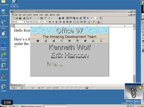 Office 97内置《模拟飞行》(Excel)和《弹珠台》(Word)等彩蛋此前都已被发现,然而,Albacore发现的这个彩蛋触发条件极其复杂,几乎不可能被意外撞见。