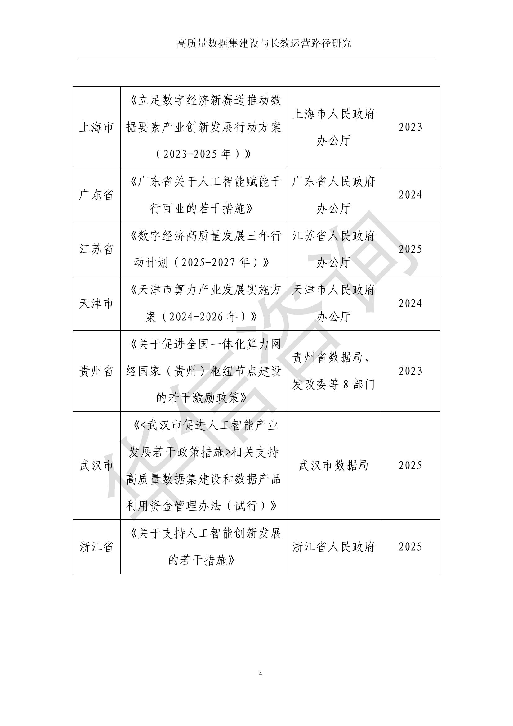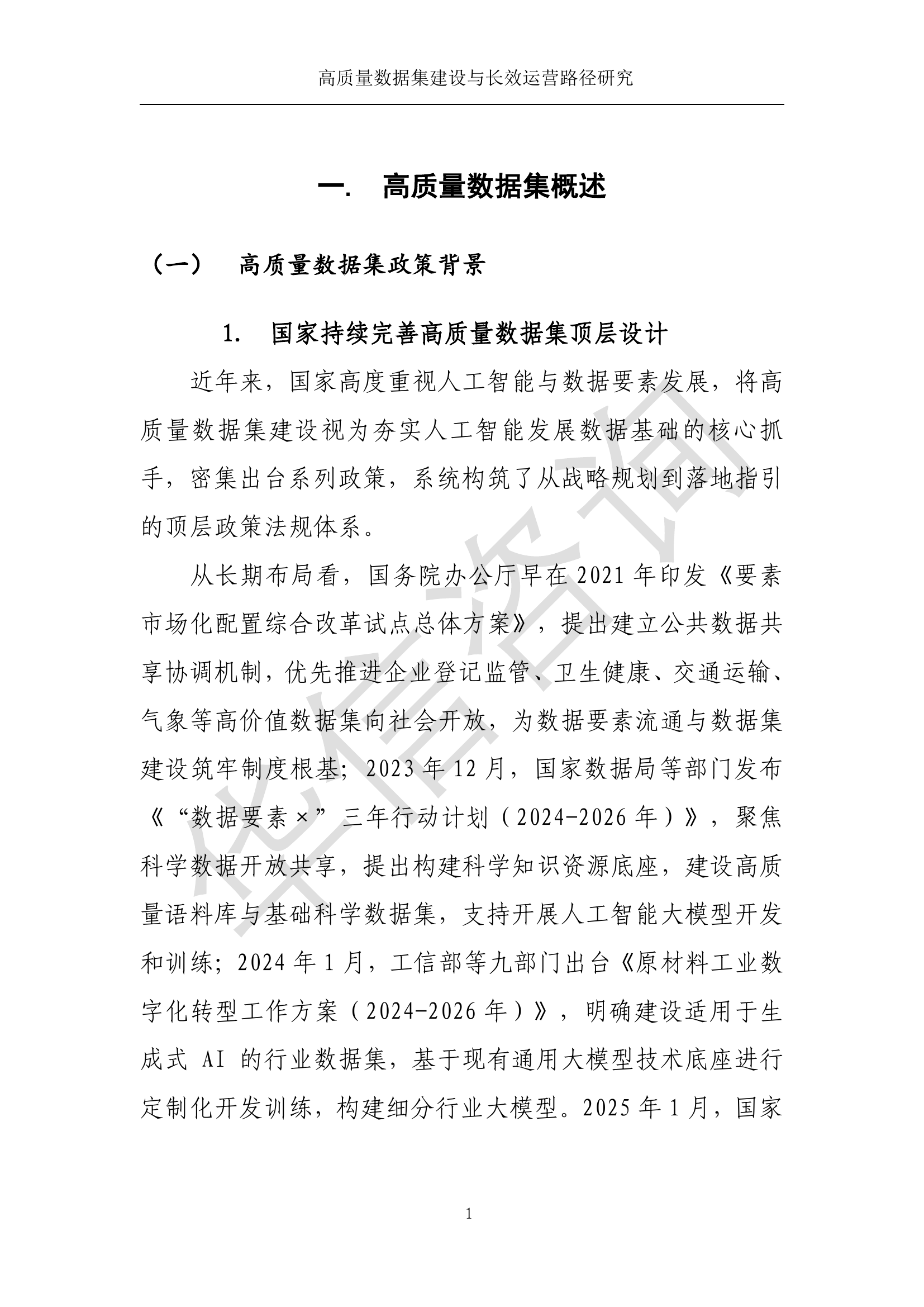 在政策层面,国家持续加强顶层设计,推动高质量数据集的标准化与制度化发展;地方也通过多种举措促进数据集的落地实施。从定义上看,高质量数据集强调数据的完整性、准确性、时效性与可用性,其分类依据涵盖领域、应用场景及数据形态等多个维度。