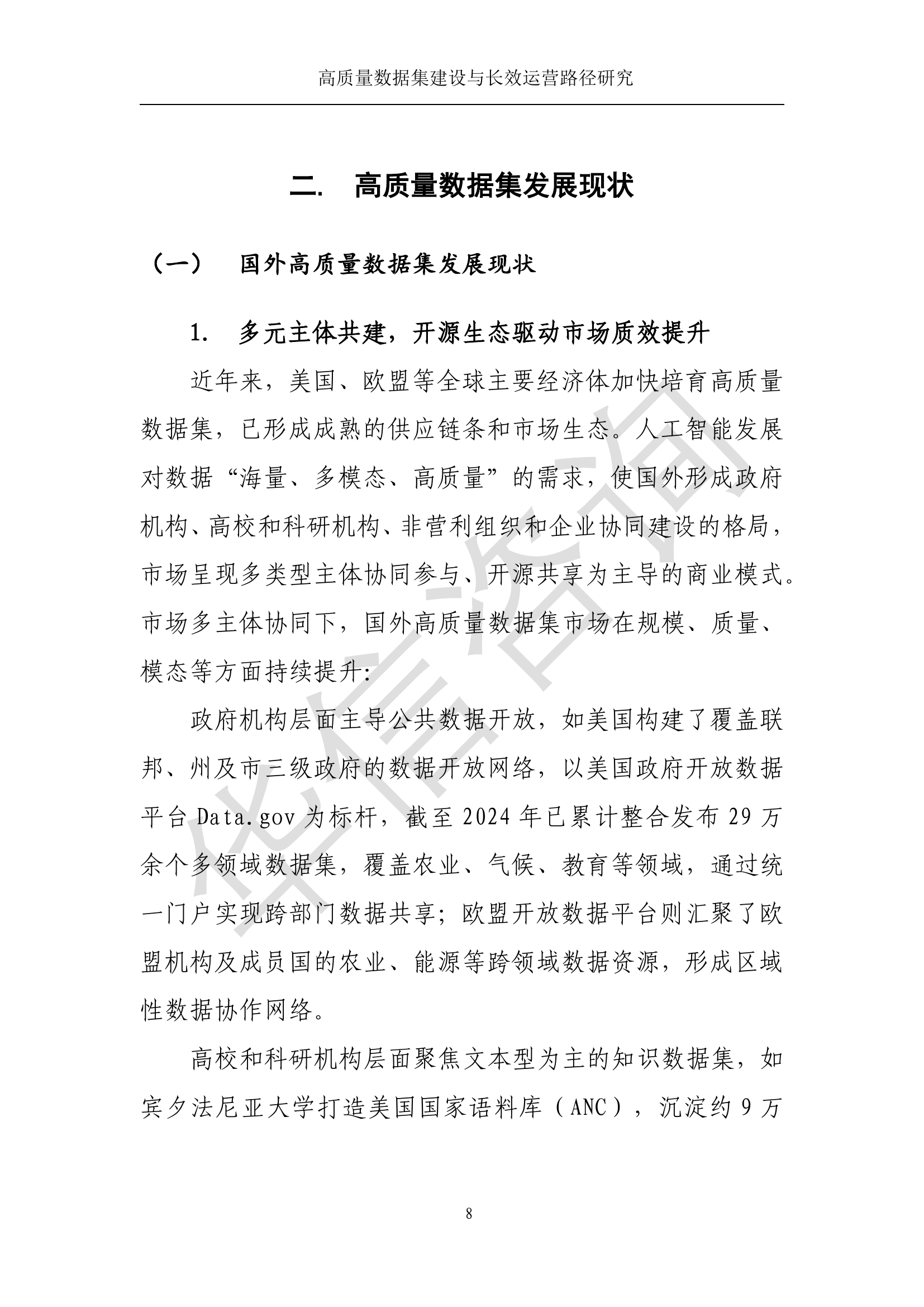 在建设路径方面,需明确数据集建设的全流程,包括需求分析、规划制定、数据采集、治理、标注与验证等关键环节。应结合实际选择合适的建设模式,如自主建设、合作共建或第三方采购等。构建资源管理、价值转化与生态共建相结合的运营体系,是实现数据集长期有效利用的重要保障。