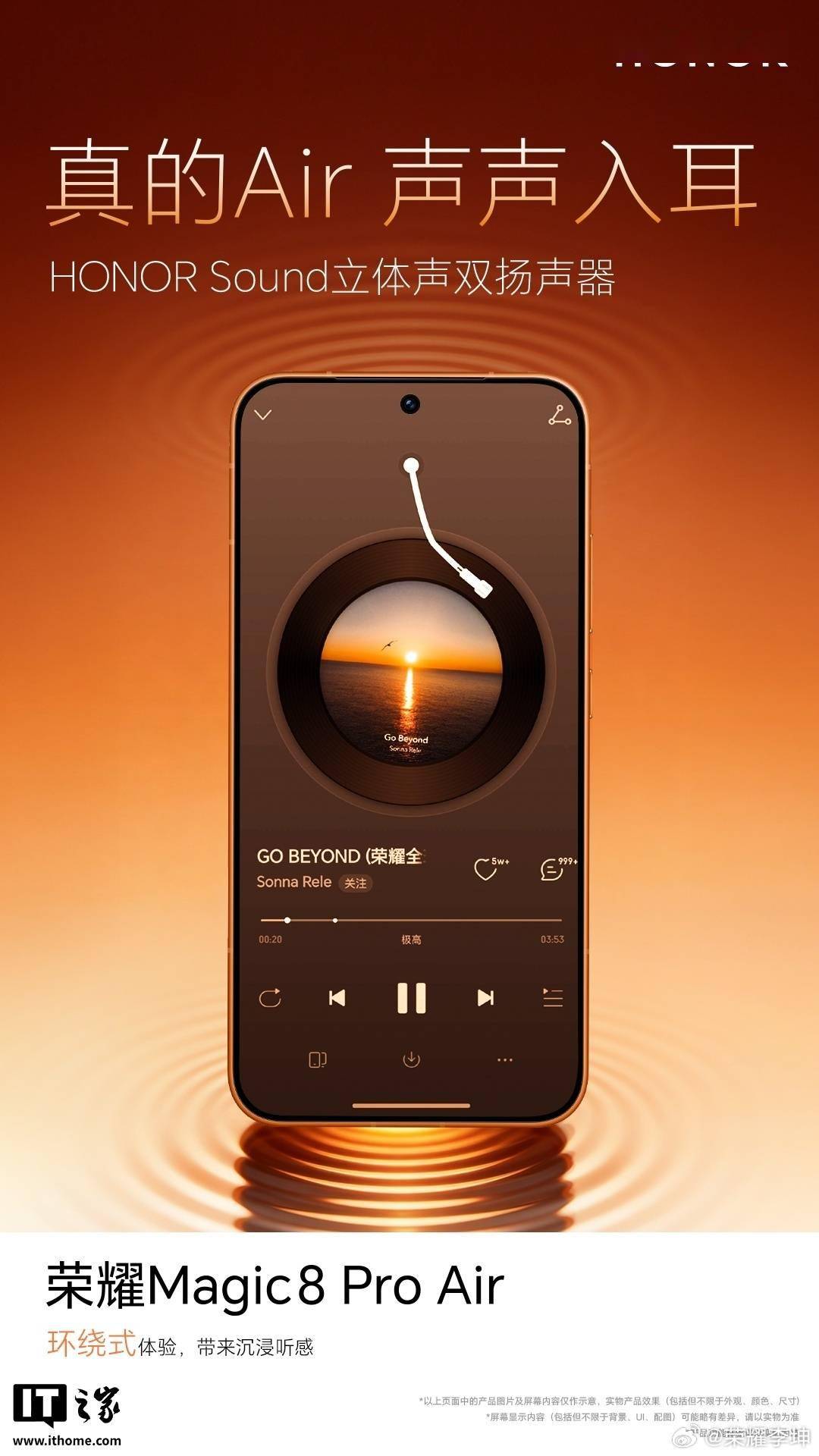另外,荣耀 Magic8 ProAir 还保留 IP68 & IP69 防尘防水,采用自研高强 7 系铝合金,并搭载 HONOR Sound 立体声双扬声器。