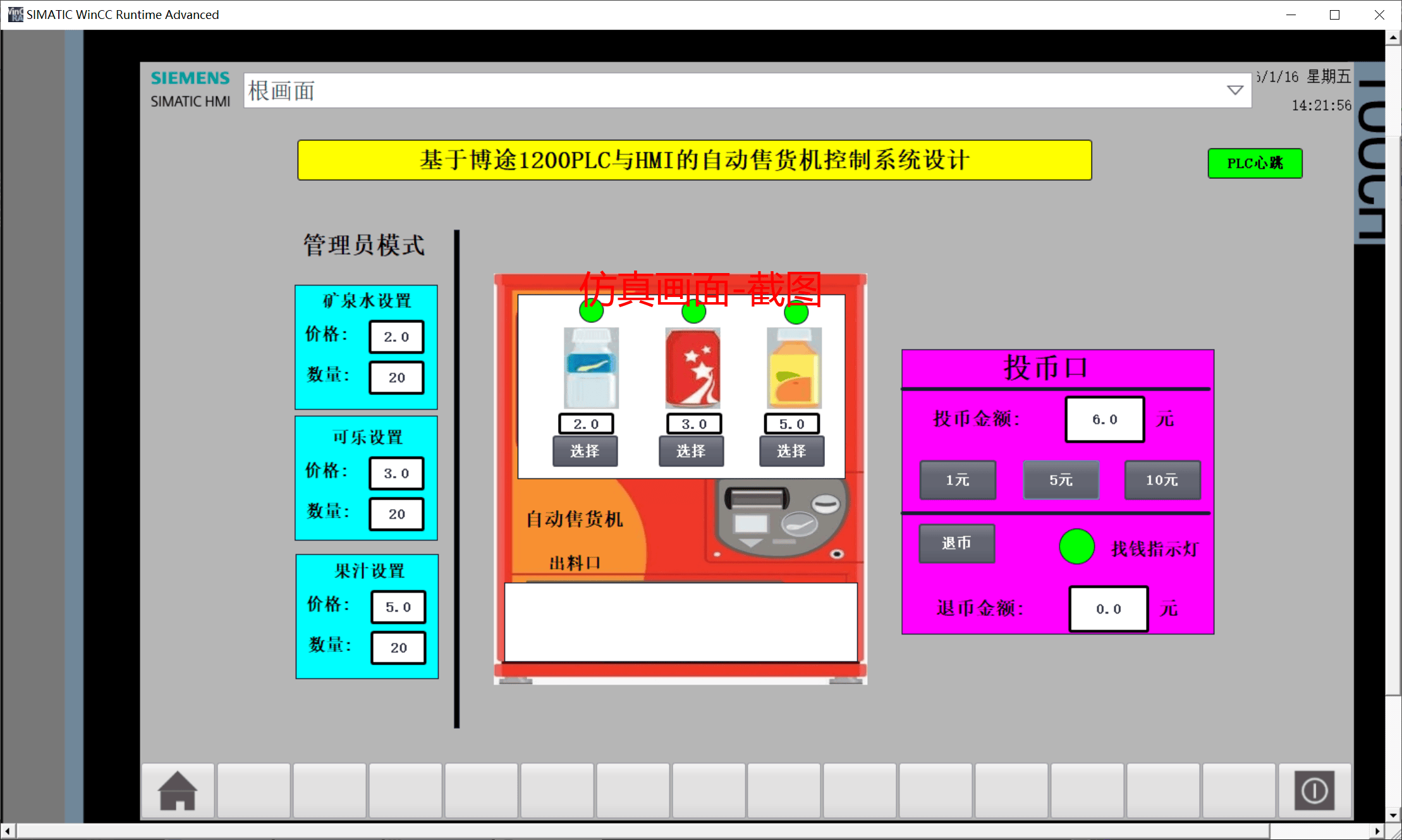 - 参数设置功能:通过HMI界面设置各商品价格、初始库存数量等参数。