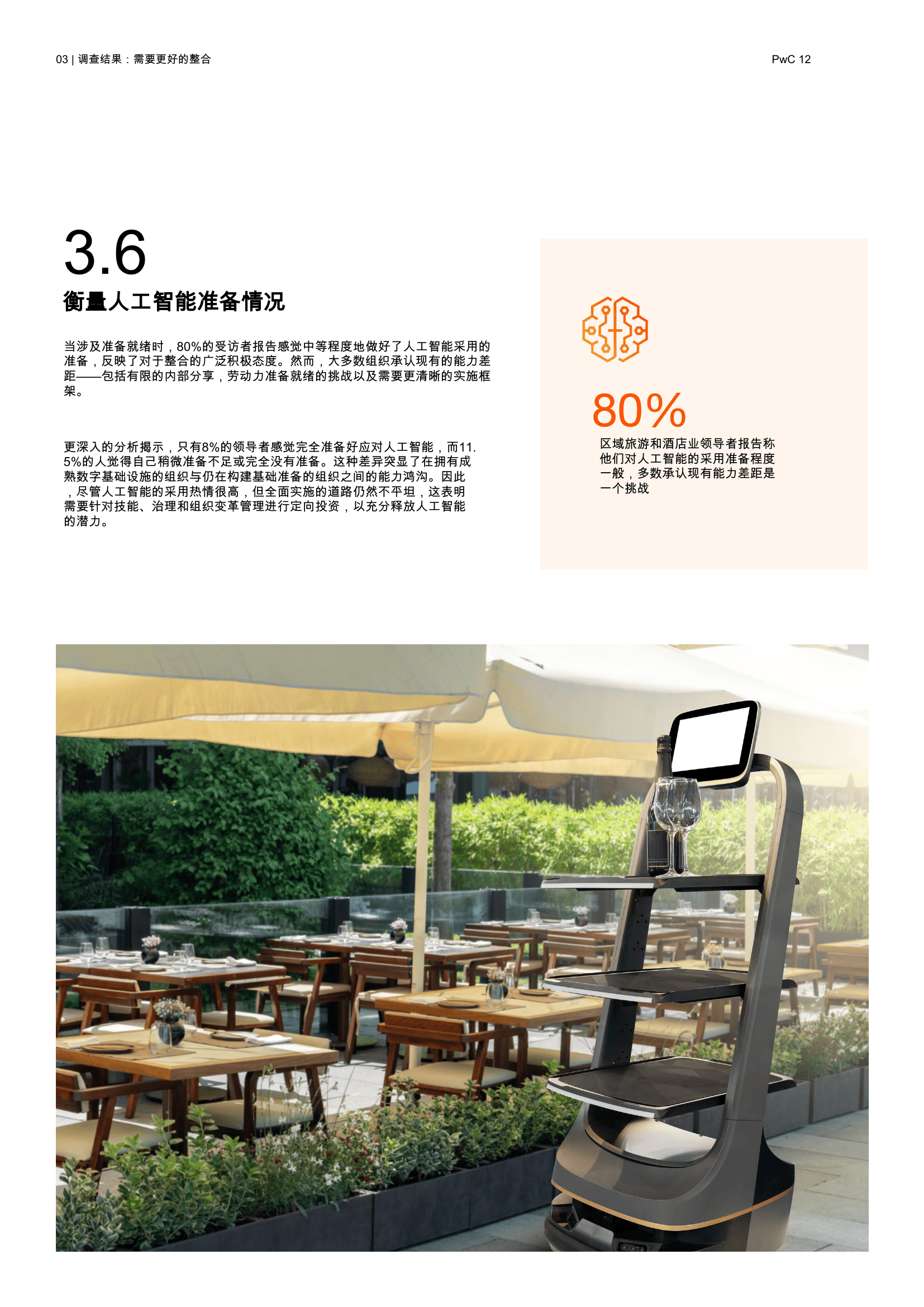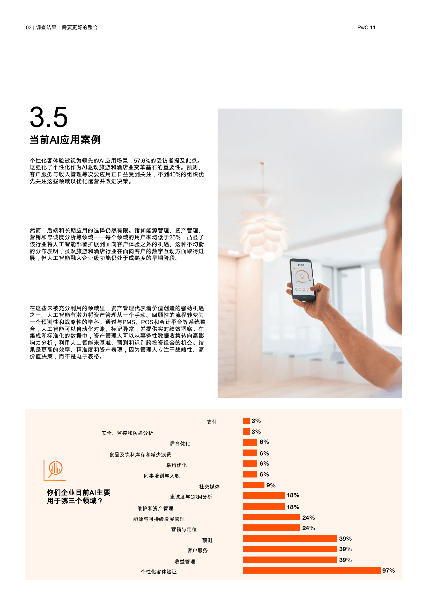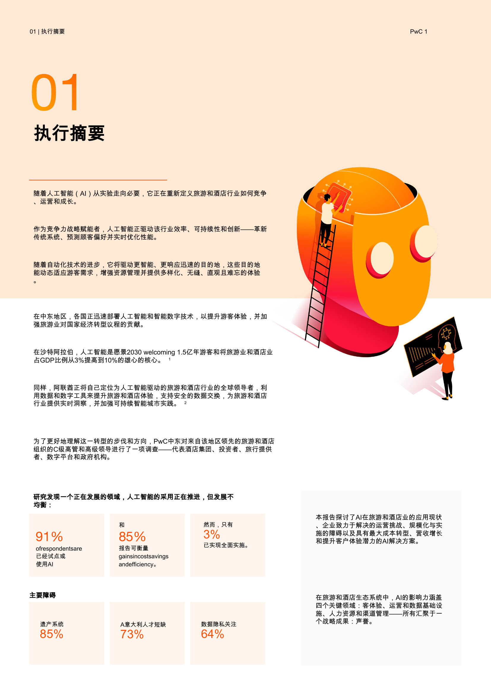 PwC中东对区域内旅游和酒店行业的高管进行调研,发现人工智能的应用虽已起步,但整体实施仍不均衡。91%的受访者表示已在试点或使用人工智能,但仅有3%的企业实现了全面推广。这反映出在规模化和落地过程中仍面临诸多挑战。