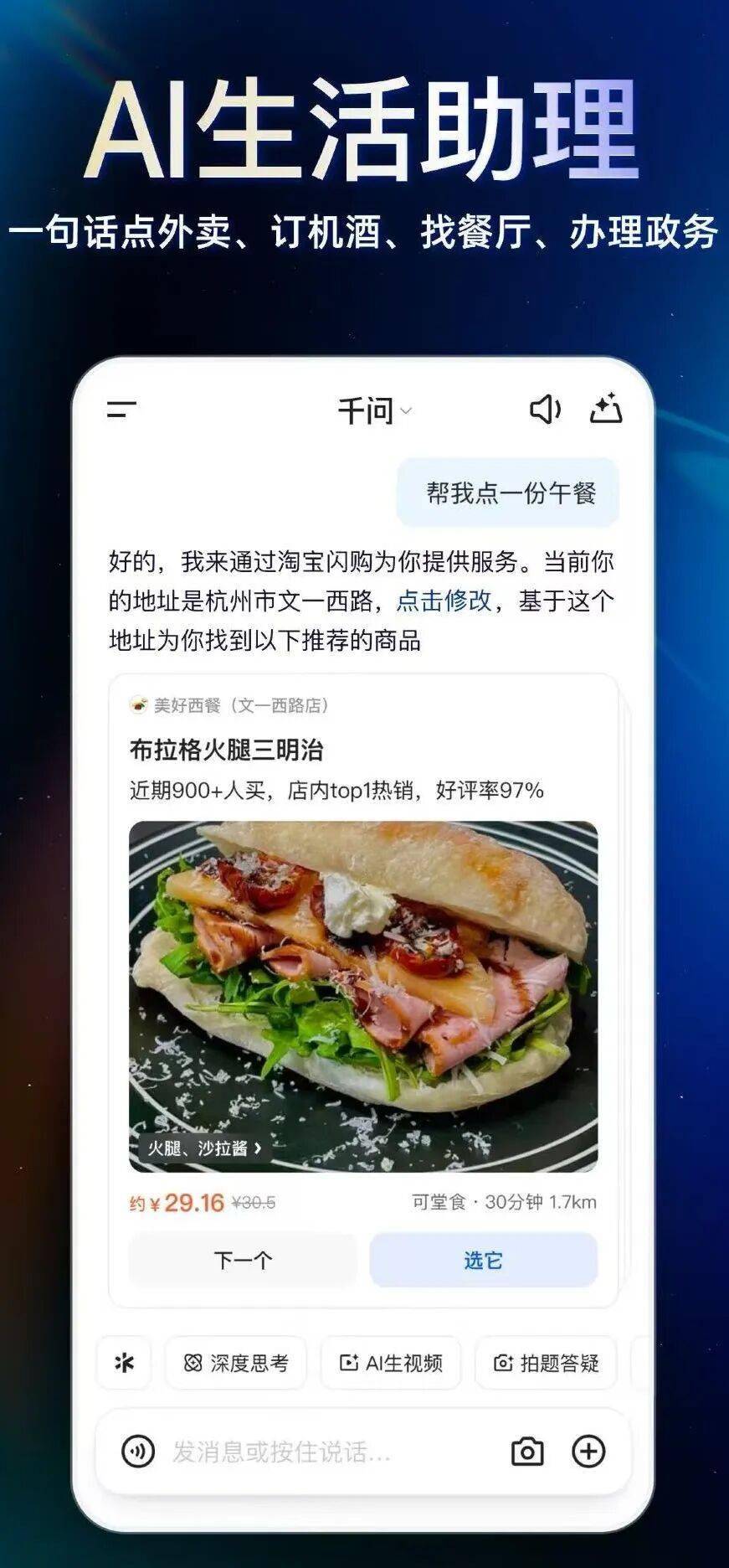 今天,千问App的全面接入阿里生态也引发了轰动。自上线以来,该App的月活跃用户数迅速突破一亿,标志着其一站式AI购物服务的成功。用户可以通过千问轻松点外卖、购买商品、甚至订机票,这一设计不仅提升了用户体验,还优化了购物流程。千问App的成功展示了AI应用在日常生活中的广泛潜力,深入到生活服务、消费购物和出行旅游等多领域。