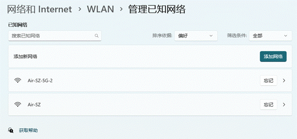 如果找不到目标历史 Wi-Fi,可回到 【设置】【网络和互联网】【WLAN】,点击【管理已知网络】,在列表中找到目标 Wi-Fi 名称,点击 【属性】,重复 【无线属性】【安全】【显示字符】步骤即可查看密码。