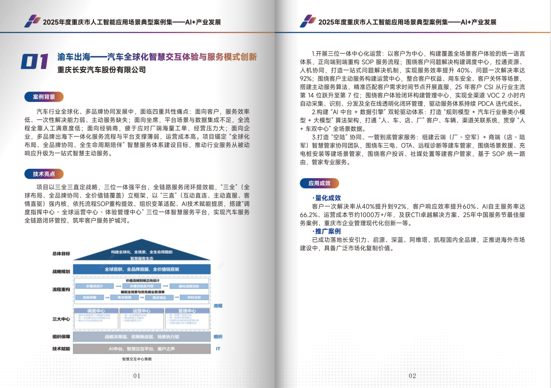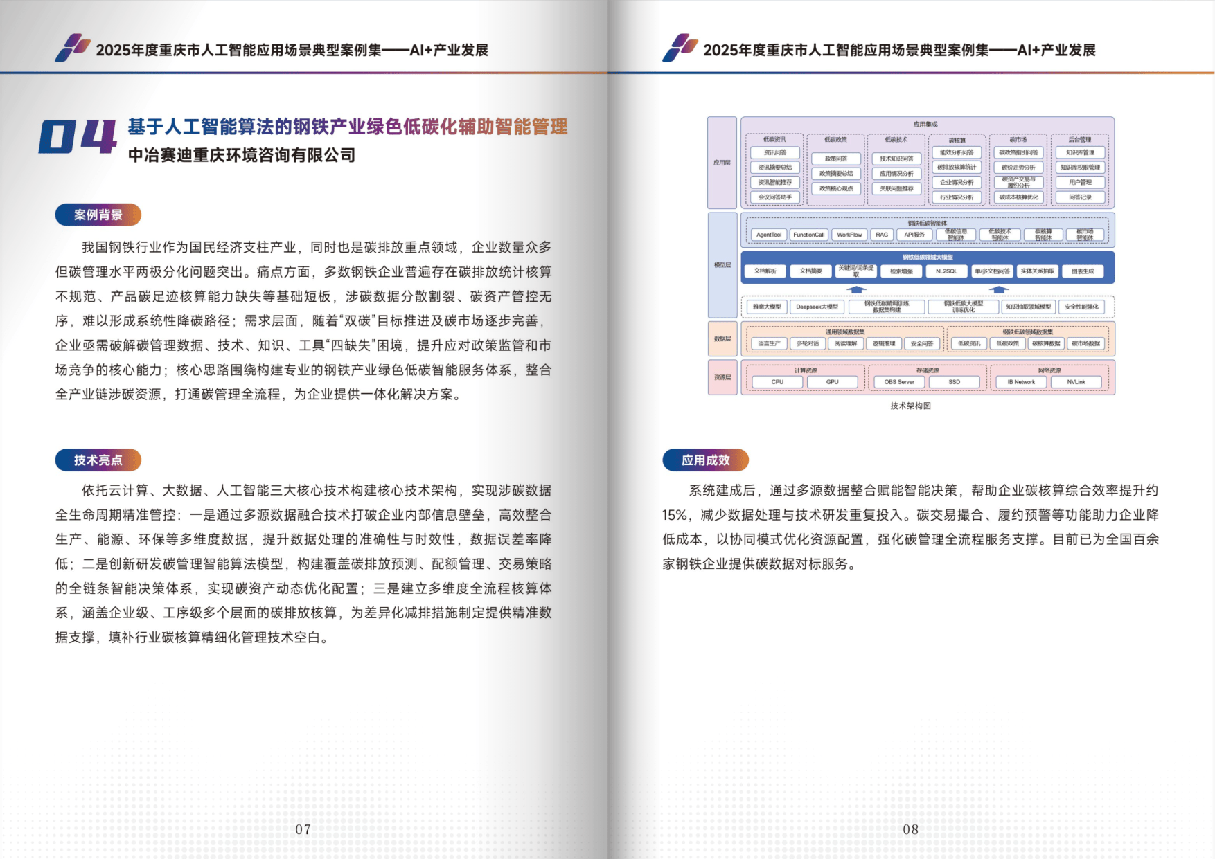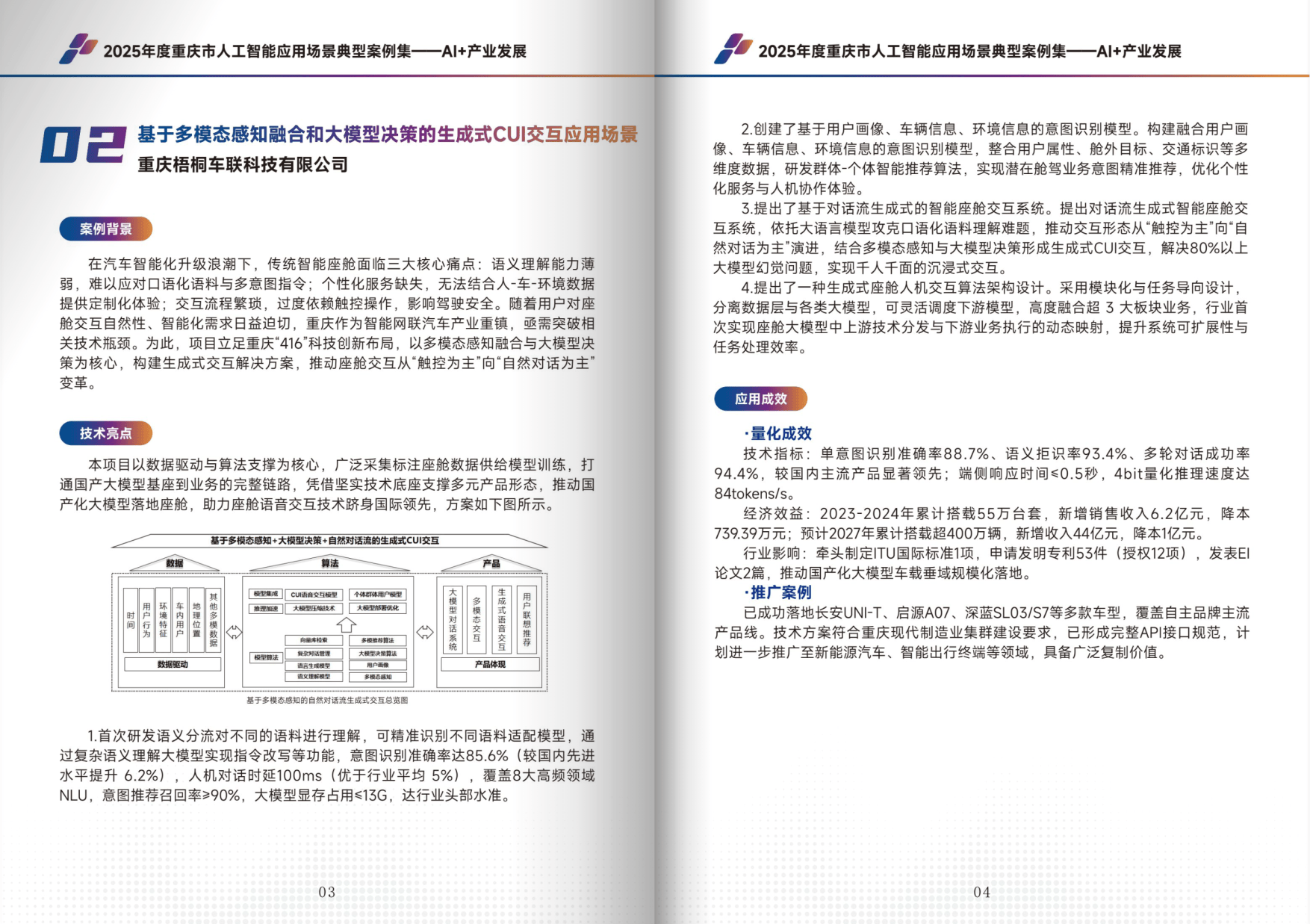 - AI + 产业发展:涵盖汽车、制造、钢铁、影视等 14 个案例,聚焦生产效率提升与绿色转型。例如长安汽车全球化智慧服务体系、梧桐车联生成式座舱交互、AI 视觉赋能 PC 构件智能工厂等,通过大模型、多模态感知等技术,实现降本增效与产业升级。
