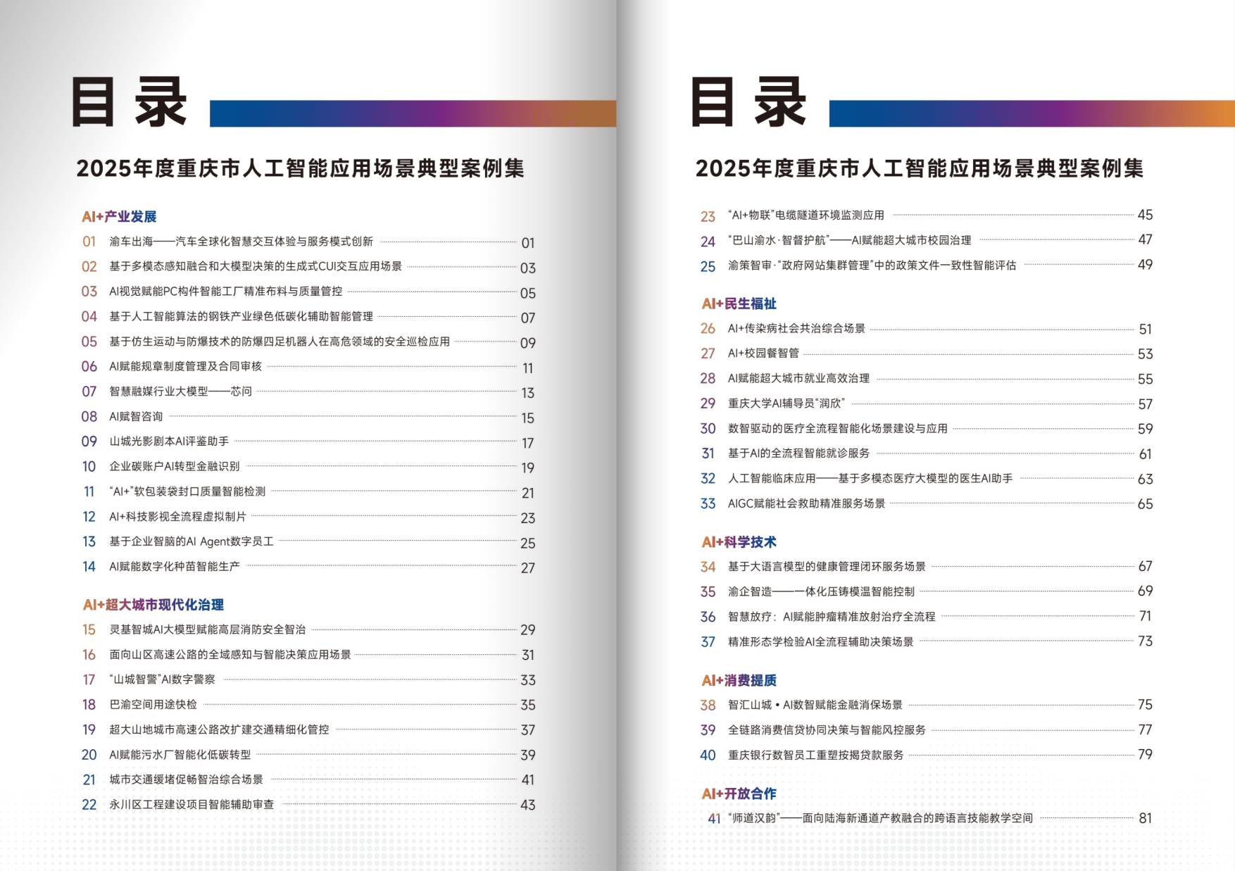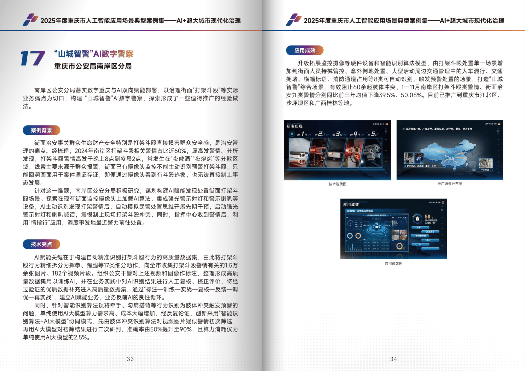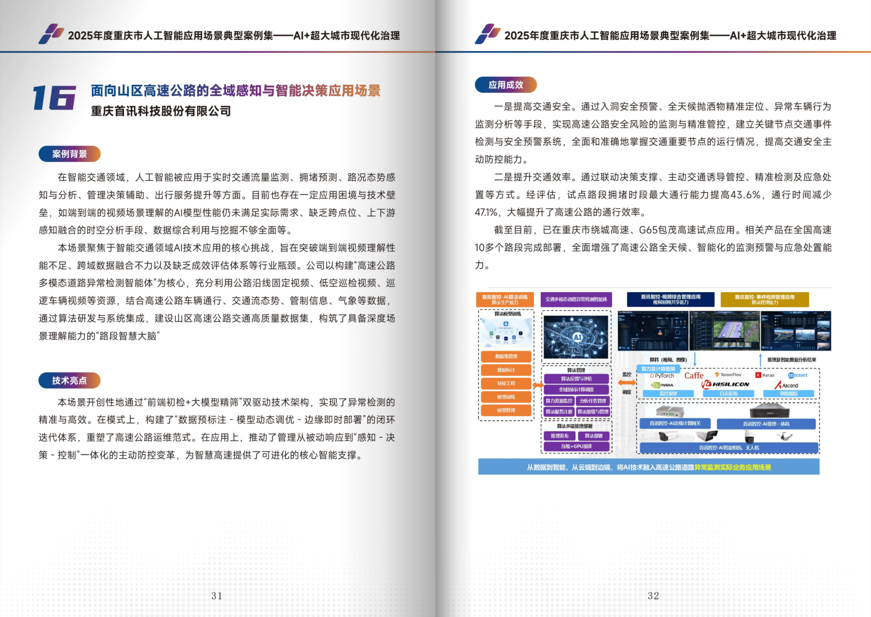 - AI + 超大城市现代化治理:包含 11 个案例,破解城市治理痛点。如高层建筑消防安全智治、山区高速公路智能管控、“山城智警” 数字警察等,依托数字孪生、智能感知技术,推动治理从被动响应向主动防控转变。