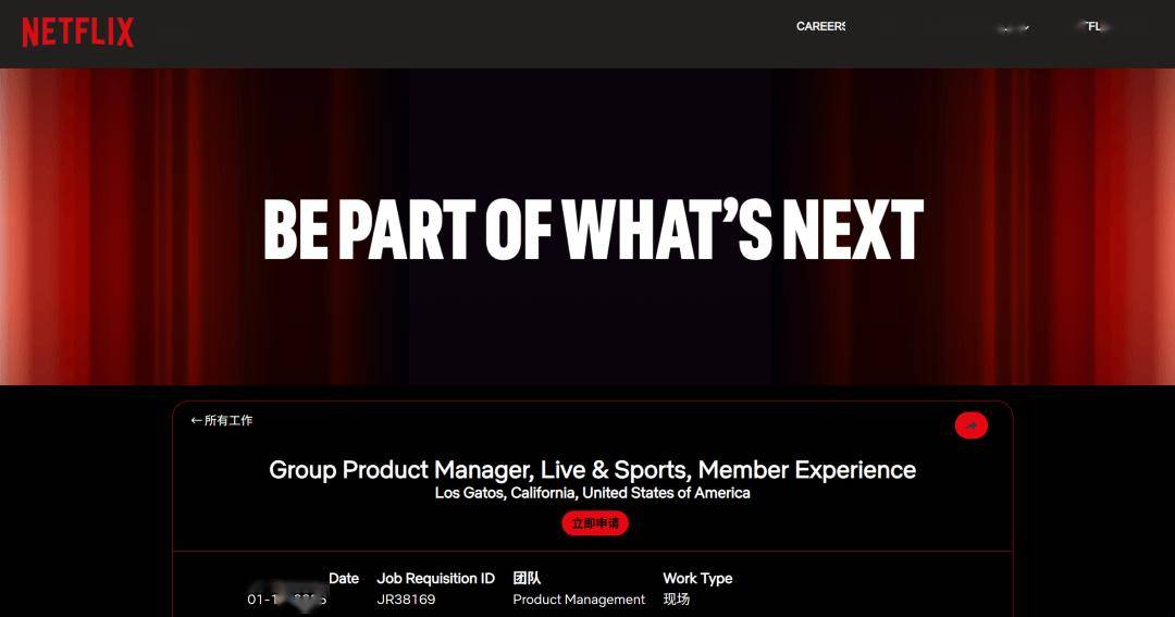 Netflix 集团产品经理(直播与体育,会员体验)一、职位核心基础信息(精准细化版)