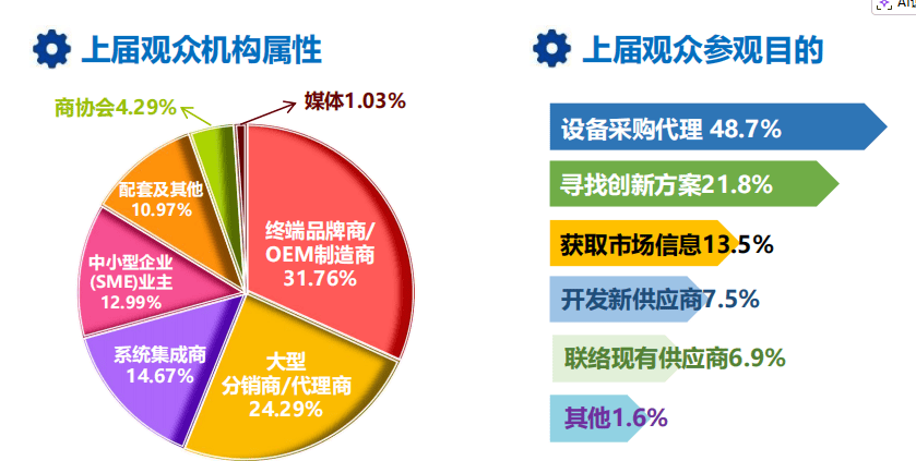 48.7% 的观众以设备采购代理为目的到场,显示出极高的采购意向与商业价值。