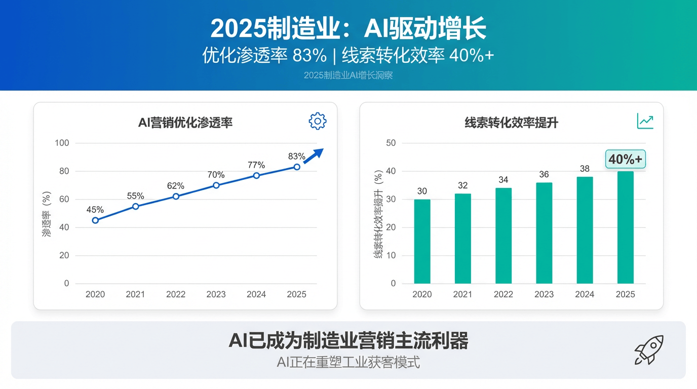 时间来到2026年,人工智能不再是远在天边的概念,而是深刻重塑产业格局的"新电能"。对于中国制造业而言,这既是挑战,也是前所未有的机遇。一方面,全球经济环境的复杂性与日俱增,传统营销模式下的获客成本持续攀升,增长瓶颈日益凸出;另一方面,AI技术的爆发式进展,尤其是生成式AI的应用,为企业开辟了全新的增长赛道。国家统计数据显示,截至2025年底,已有超过83%的工业企业将AI营销优化纳入核心预算,其中67%的企业反馈,通过AI驱动的营销渠道,线索转化效率相较于传统方式实现了平均40%以上的增长。