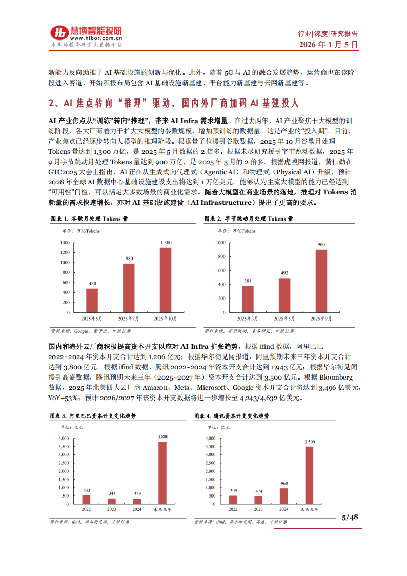 行业的发展重心正在发生历史性迁移。过去两年,产业狂热集中于“训练侧”,疯狂堆砌参数与数据。而今,随着主流大模型能力跨越“可用性门槛”,产业焦点已明确转向“推理侧”。谷歌、字节跳动等巨头月处理Tokens量的成倍增长,清晰揭示了商业场景落地带来的推理需求井喷。AI正从生成式向代理式与物理式演进,预计到2028年,全球AI数据中心基建支出将迈向1万亿美元大关。为应对这一趋势,国内外云厂商均已拉开资本开支竞赛的序幕,未来三年投入规划均达数千亿乃至数千亿美元级别,为行业增长注入强劲动力。