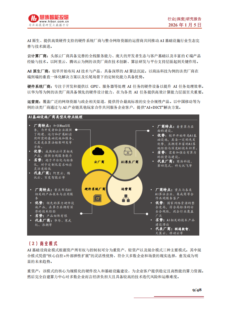 面对万亿赛道,不同类型的厂商正基于自身禀赋构建竞争壁垒。以阿里云、腾讯云、百度智能云为代表的头部云厂商,凭借全栈服务能力、庞大生态和丰富实践,打造自主可控的AI基础设施底座。华为等硬件系统厂商则在算力层提供核心支撑。商汤、科大讯飞等AI原生厂商,凭借深厚的算法积淀和垂直场景经验,提供端到端解决方案。运营商则依托广泛的网络与政企渠道,提供安全合规的“AI+DICT”服务。