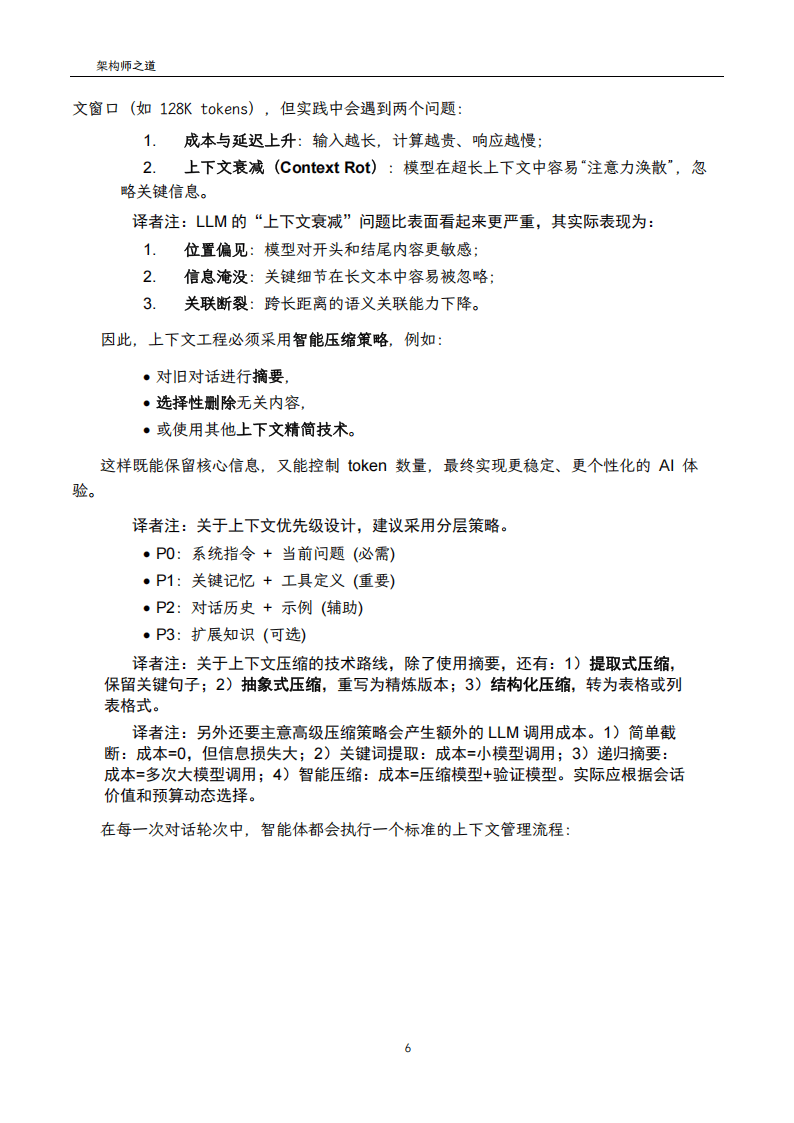 上下文工程是提示工程的升级版,核心是在大语言模型的上下文窗口内动态组装和管理信息,解决LLM本质无状态的局限。其需整合指导推理的上下文、用于推理的事实证据及当前对话即时信息三类内容,并通过智能压缩策略应对上下文膨胀与衰减问题,同时遵循分层优先级设计保障信息有效性。