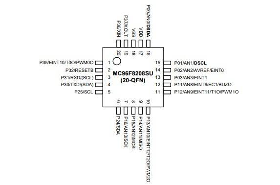 在实际设计中,MCU 的“好用”往往体现在外围电路是否足够简洁。MC96F8208S 在这方面的设计思路非常清晰: