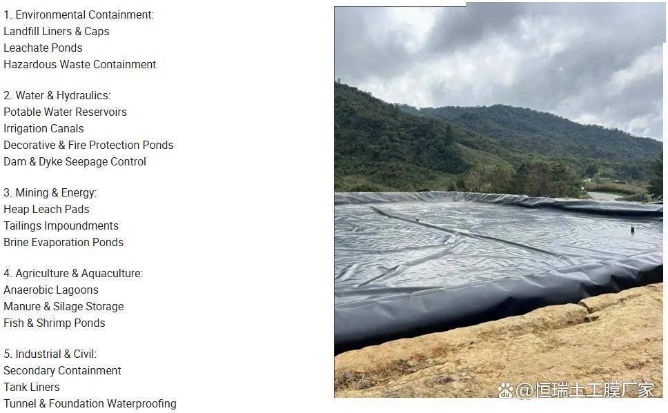 我们需要明确一个基本概念:什么是土工膜?简单来说,它是一种以高分子聚合物(如高密度聚乙烯HDPE)为主要原料制成的防水阻隔型材料。你可以把它想象成一个人工制作的不透水“皮肤”,铺设在水池的底部和边坡,目的是防止水体渗漏到地下,从而保障储水效率,并避免对周边土壤和地下水体造成潜在影响。