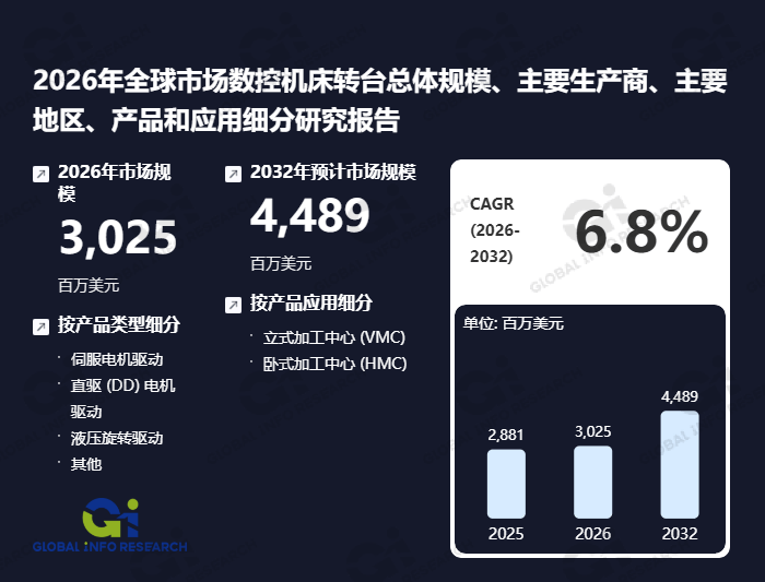 近日,由全球知名市场研究机构环洋市场咨询(Global Info Research)主导完成的《2026年全球市场数控机床转台总体规模、主要生产商、主要地区、产品和应用细分研究报告》正式发布。报告通过多维度、系统性的调研分析,全面呈现了全球数控机床转台市场的发展现状与未来走势。研究涵盖历史与预测共跨越十一年的数据周期,其中历史数据追溯至2021-2025年,预测数据则延伸至2026-2032年,力求为行业相关方提供具备前瞻性与实践指导意义的市场参考。