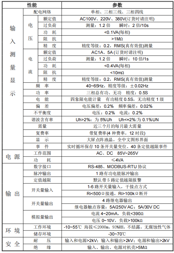系统接线方式有三相四线制、三相三线制。(用户可自行设置,但接线图需更改)