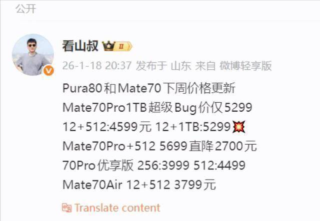 通过推出 Mate70 Pro 优享版(3999元起)和 Mate70 Air(3799元起)。